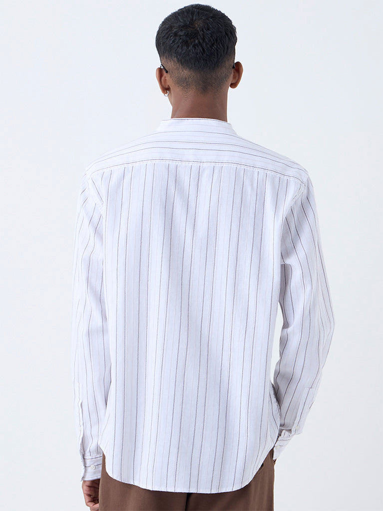 Ascot White Striped Relaxed-Fit Cotton Shirt