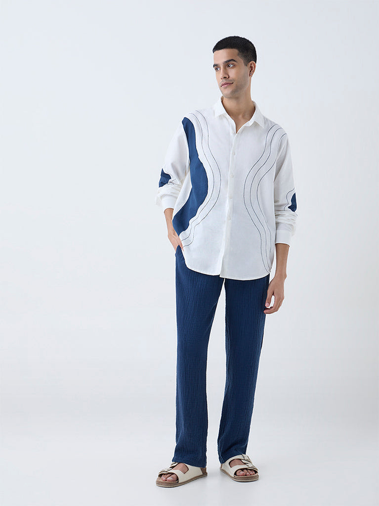 ETA White Embroidered Relaxed-Fit Cotton Shirt