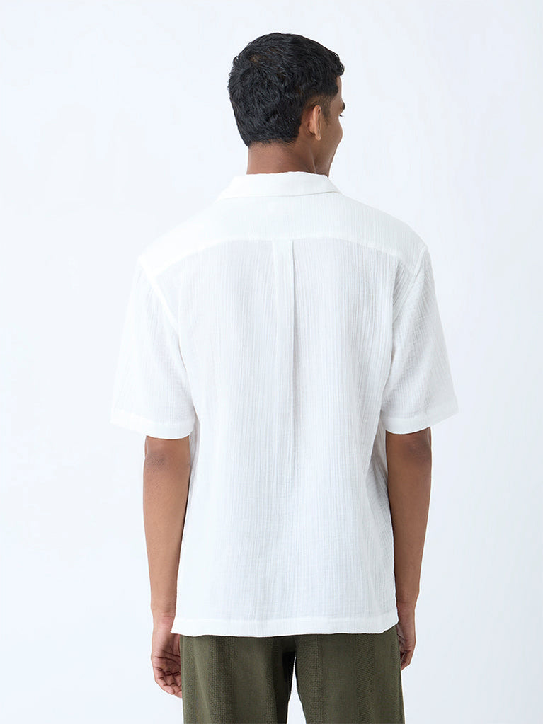 ETA White Crinkle-Textured Relaxed-Fit Cotton Shirt