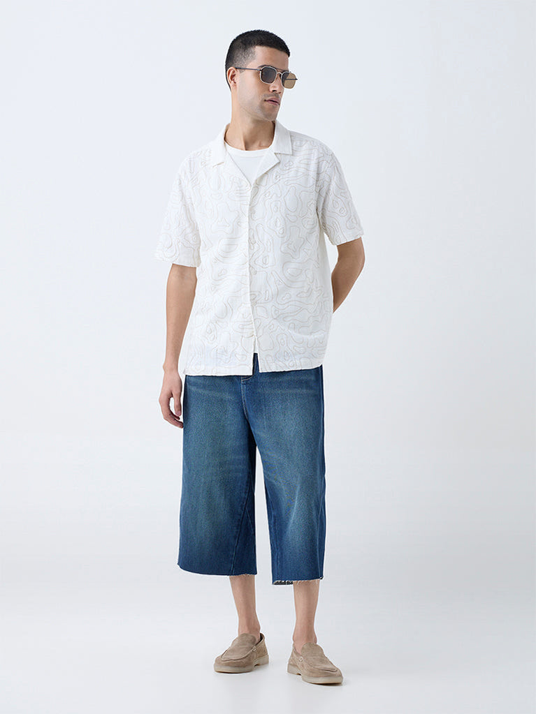 ETA White Printed Relaxed-Fit Cotton Shirt