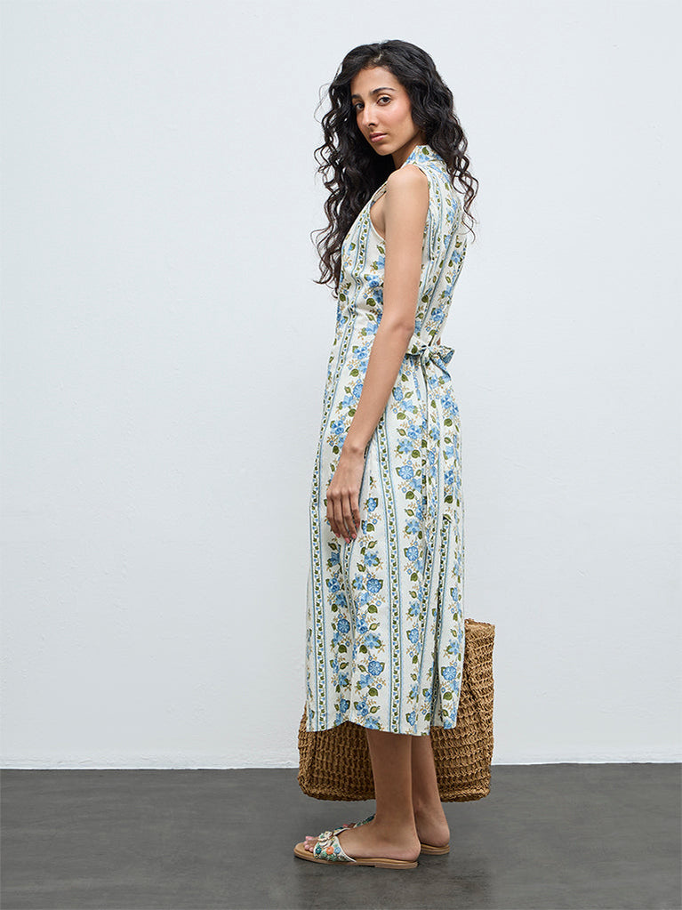 Bombay Paisley Blue Floral Cotton Straight Dress