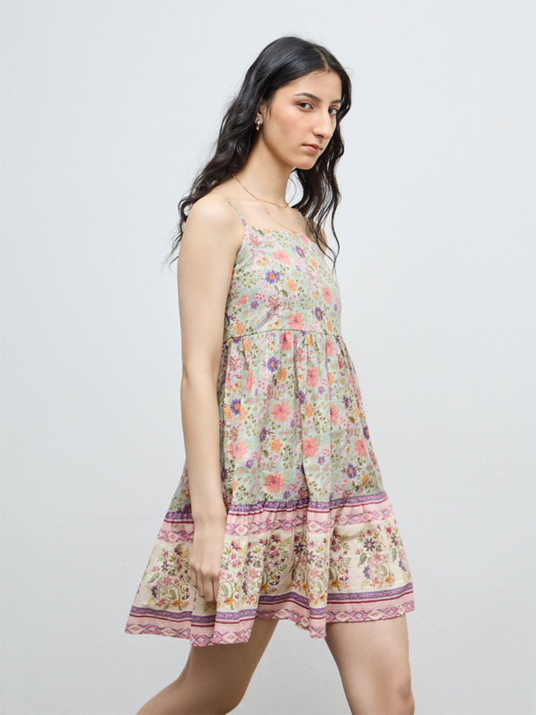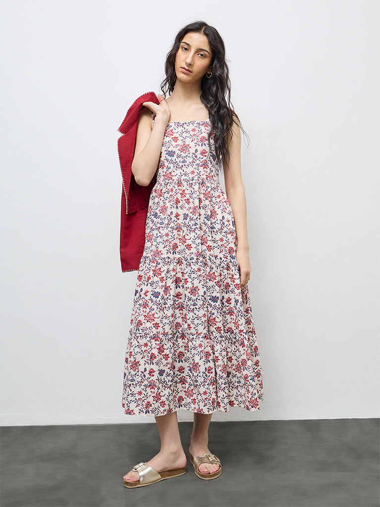 Bombay Paisley Off-White Floral Cotton Tiered Dress