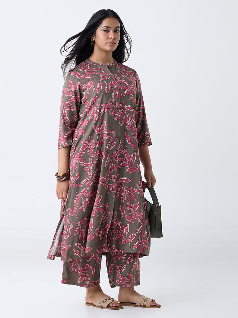 For days that ask for quiet grace, this taupe A-line kurta from Diza offers a refined answer. Crafted from lightweight fabric and detailed with leaf motifs, it blends traditional design with modern ease. The band collar and button placket lend structure, while the 3/4 sleeves and side pocket make it as functional as it is elegant.