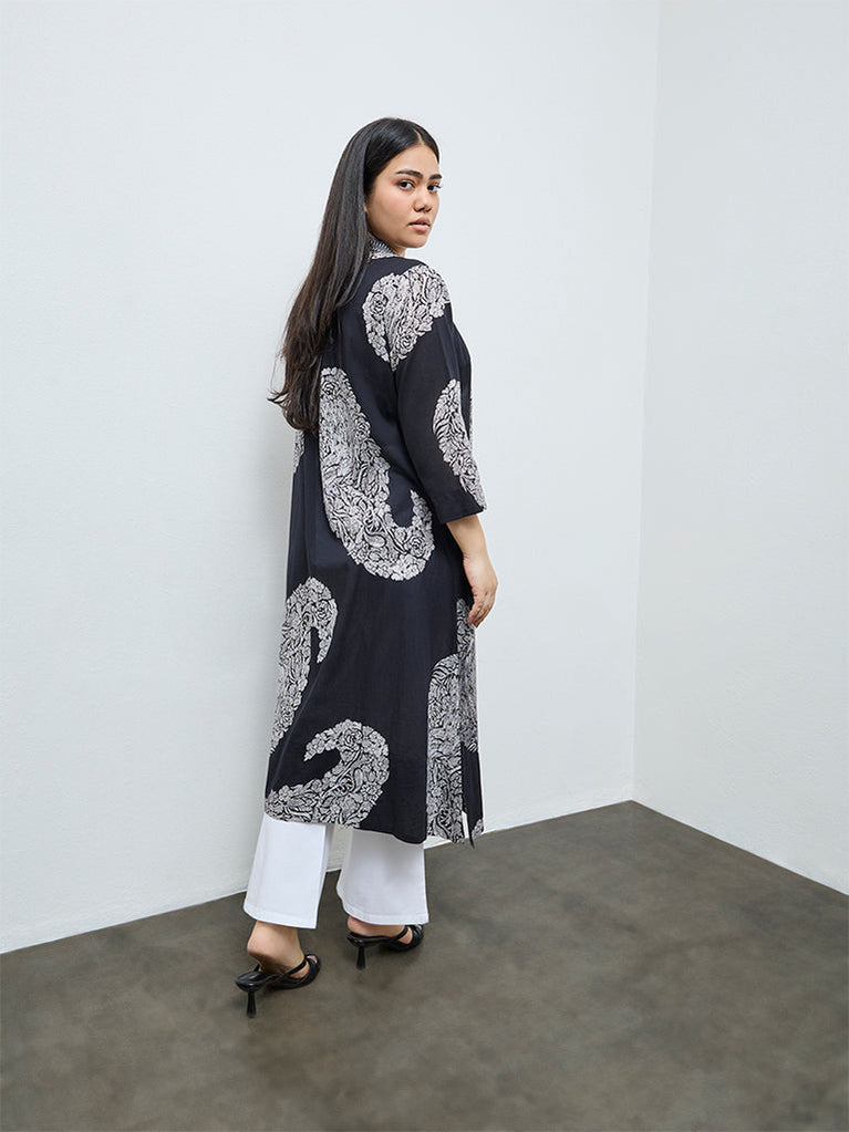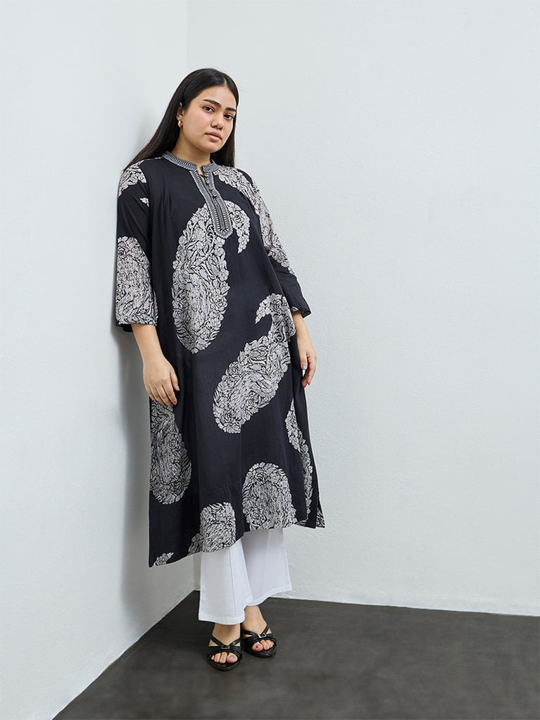 Diza Black Paisley Design A-Line Kurta