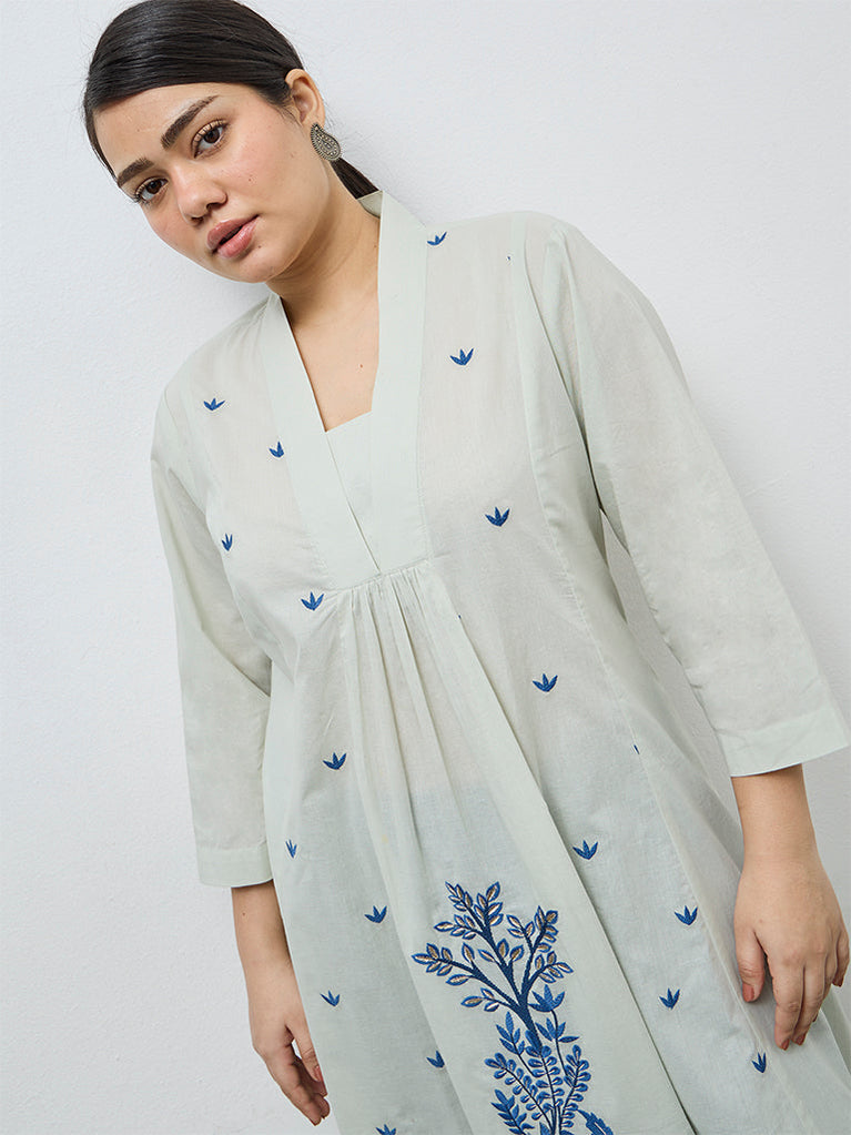 Diza Mint Foliage Embroidered Cotton A-Line Kurta