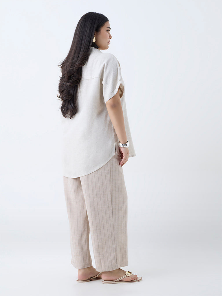 Gia Beige Pinstriped High-Rise Trousers with Belt