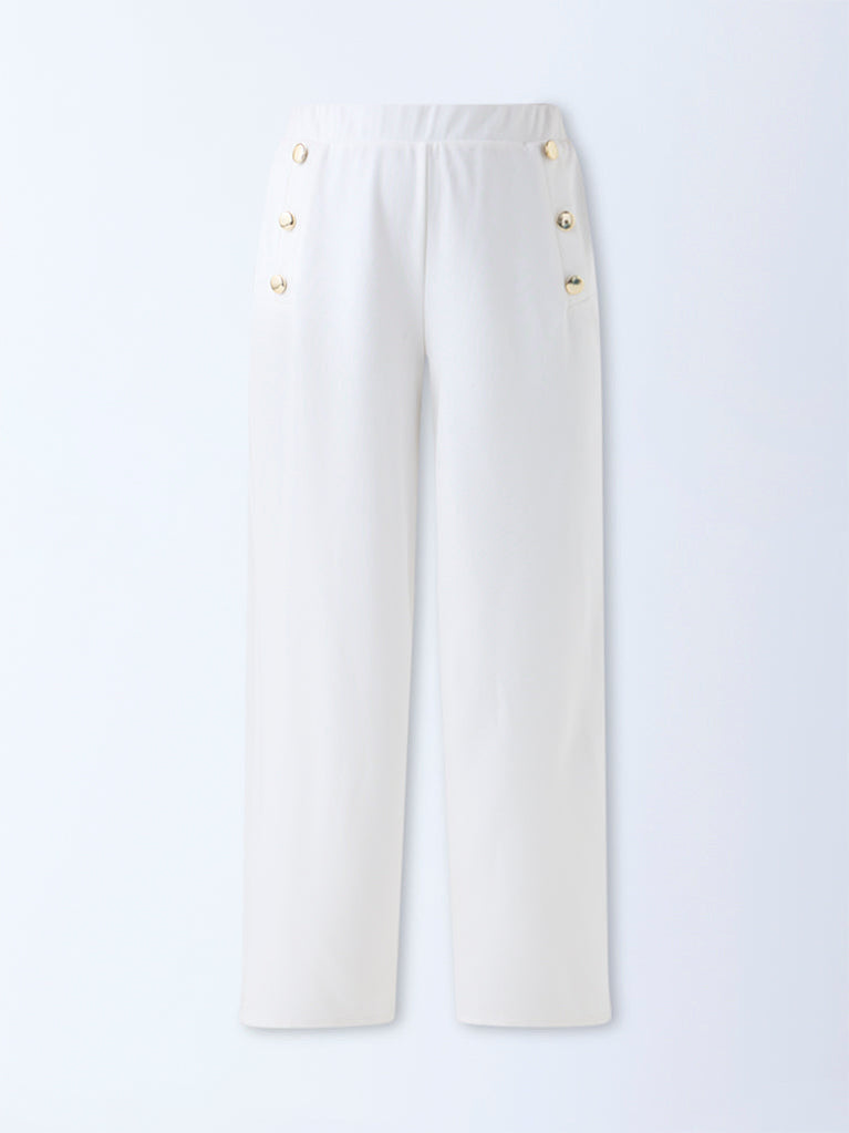 Designed to anchor a versatile wardrobe, these off-white trousers from Gia offer a polished straight fit in a lightweight fabric. The elasticated waistband ensures comfort, while button-detailed side pockets introduce a touch of structured finish.