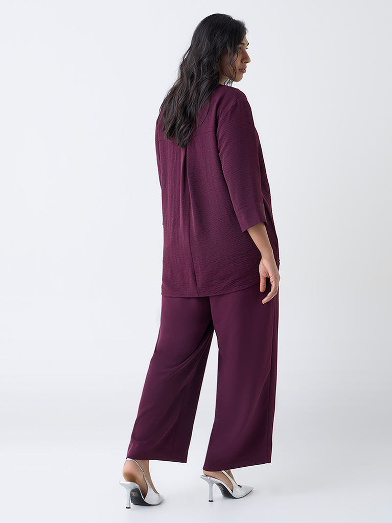Gia launches these wine trousers, constructed from a breathable fabric in a high-rise silhouette. It is fitted with a smooth elasticated waistband at the back and side pockets at the front, making them an effortless choice for everyday wear and laid-back styling.