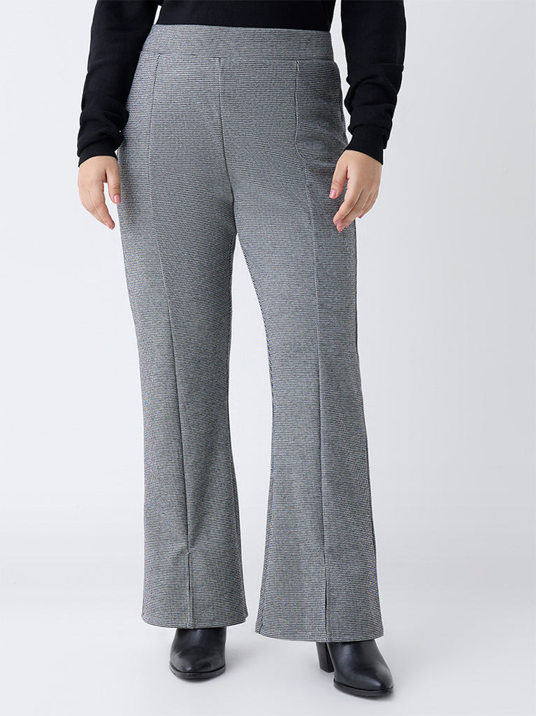 Gia Grey Checkered High-Rise Bootcut Trousers