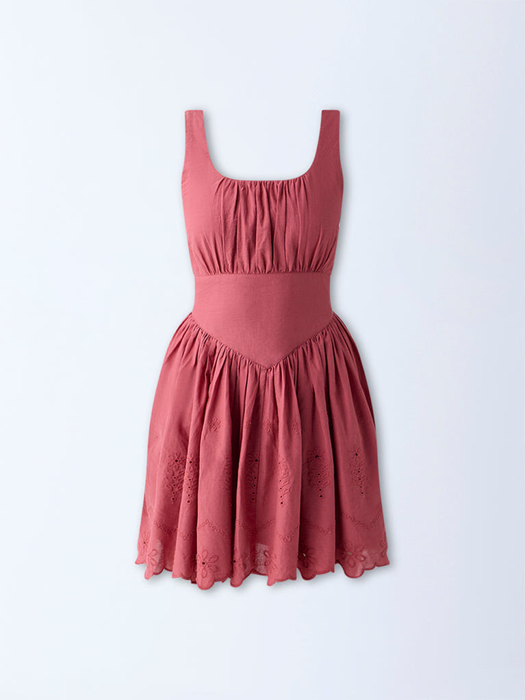 Bombay Paisley Dusty Pink Embroidered Cotton A-Line Dress