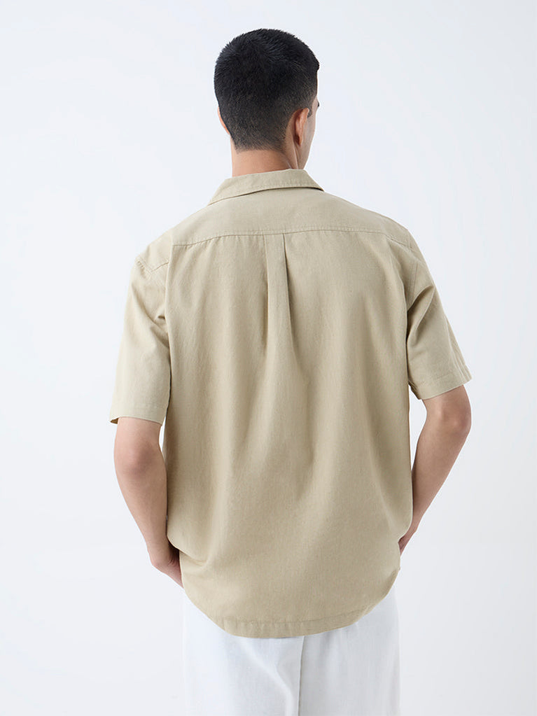 ETA Taupe Embroidered Relaxed-Fit Cotton-Blend Shirt