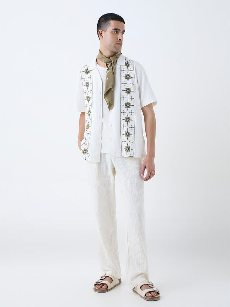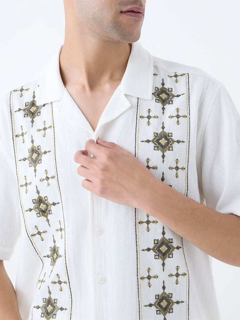 ETA Off-White Embroidered Relaxed-Fit Cotton Shirt