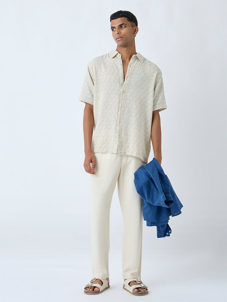 ETA Off-White Floral Pattern Relaxed-Fit Cotton Shirt