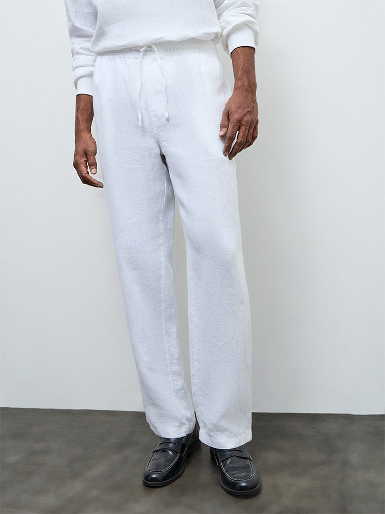 Ascot White Relaxed-Fit Mid-Rise Linen Trousers