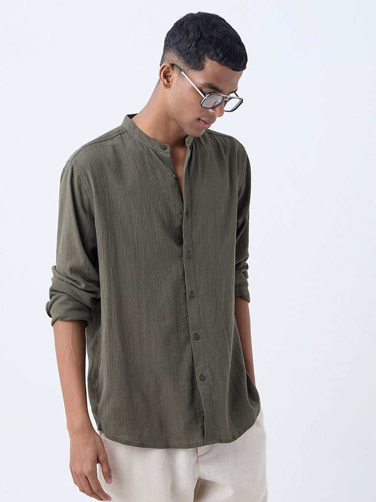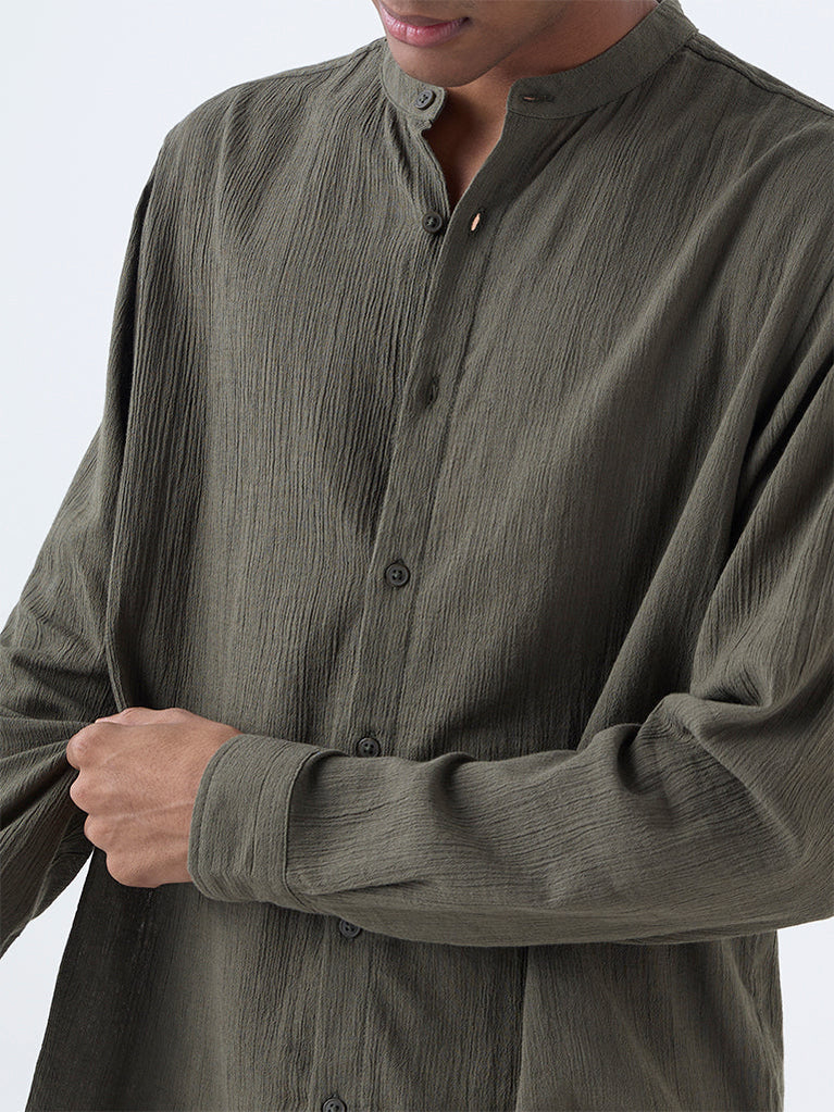 ETA Olive Textured Relaxed-Fit Cotton Shirt