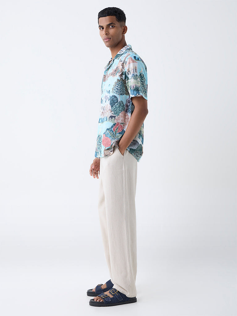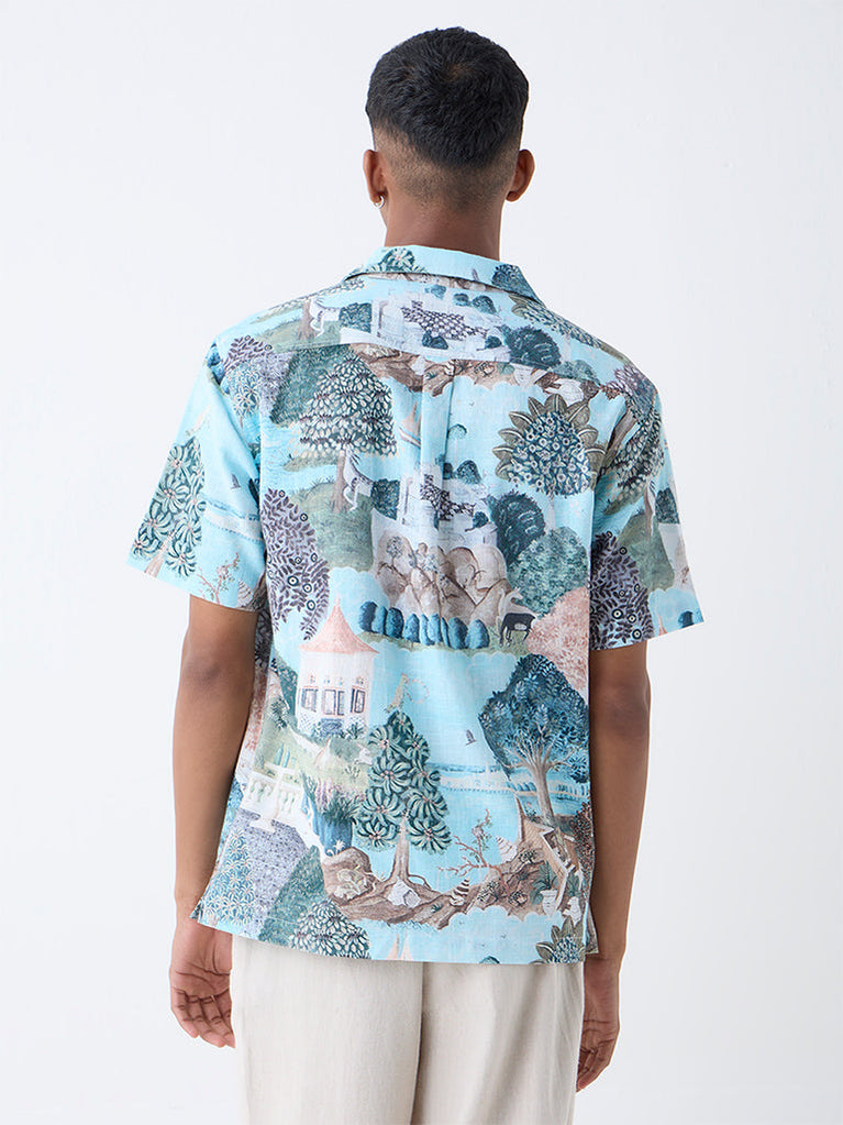ETA Light Teal Scenic-Inspired Relaxed-Fit Cotton Shirt