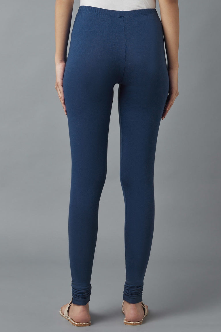 Cotton Lycra Churidar In Classic Blue Colour Comes In Midrise And Has Elasticated Waistband.