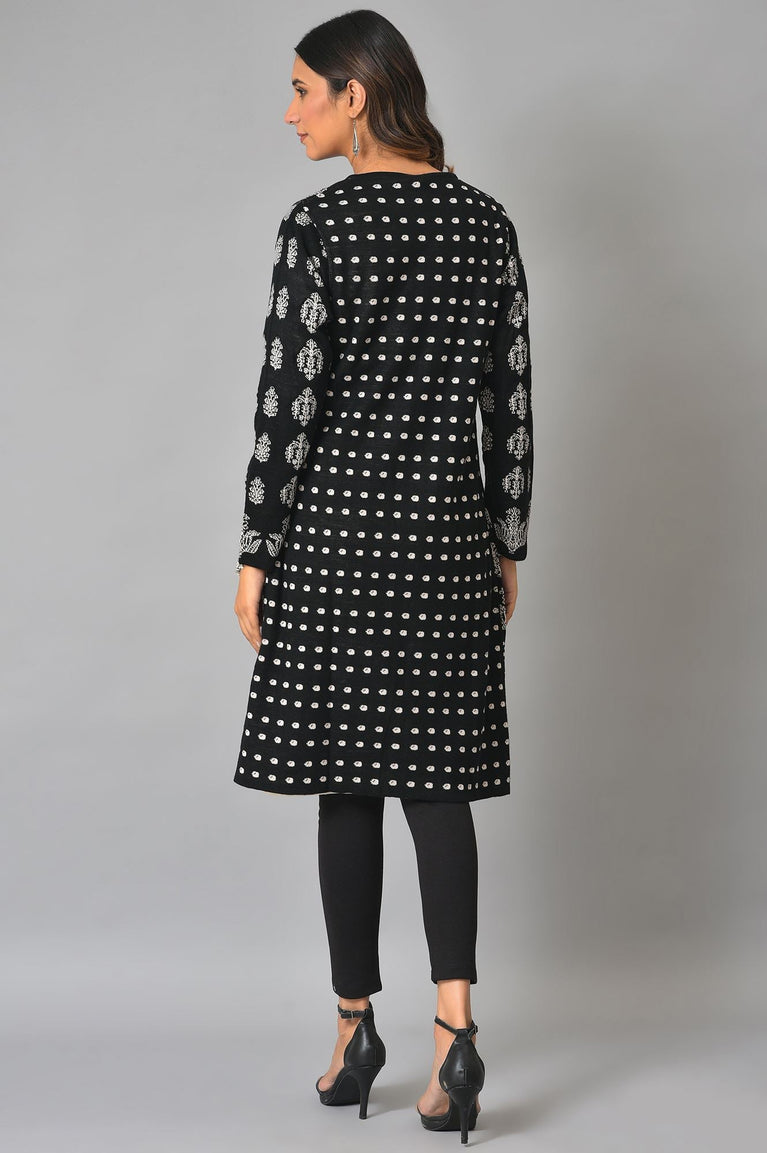 Black Beadwork Embroidery Kurta In Textured Cotton