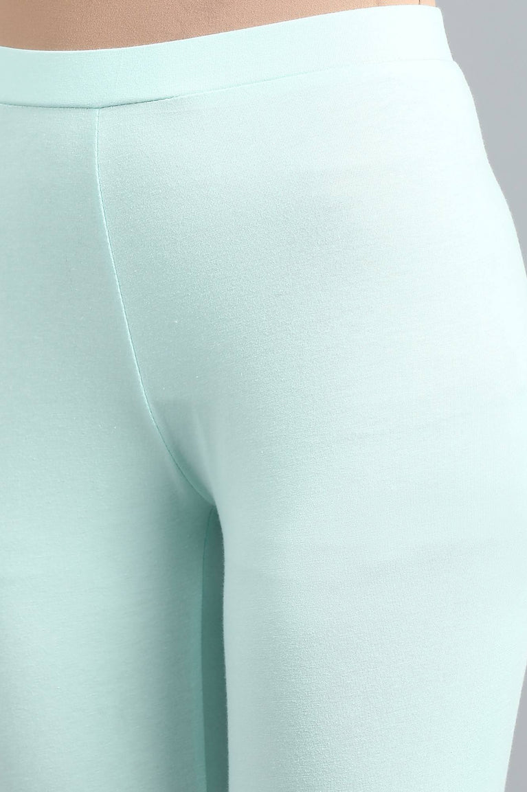 Blue Solid Skinny Fit Cotton Tights With Elasticated Waist