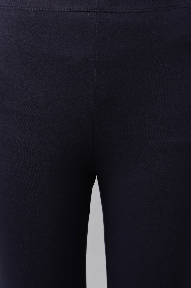 Blue Solid Skinny Fit Cotton Tights With Elasticated Waistband