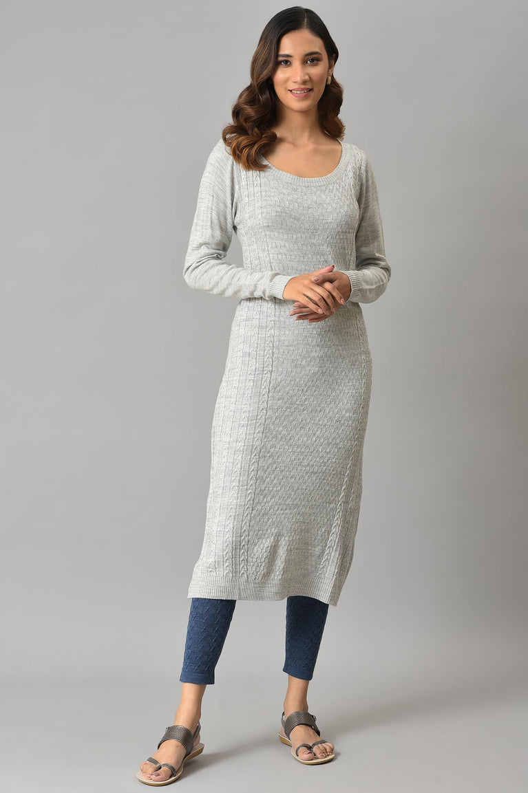Experience the comfort of these knitted ankle-length tights, designed with an elasticated waistband and mid-rise for all-day ease. The solid blue color adds a versatile touch to your wardrobe, perfect for casual outings. Pair them with a crop top or kurta for a stylish, relaxed look.