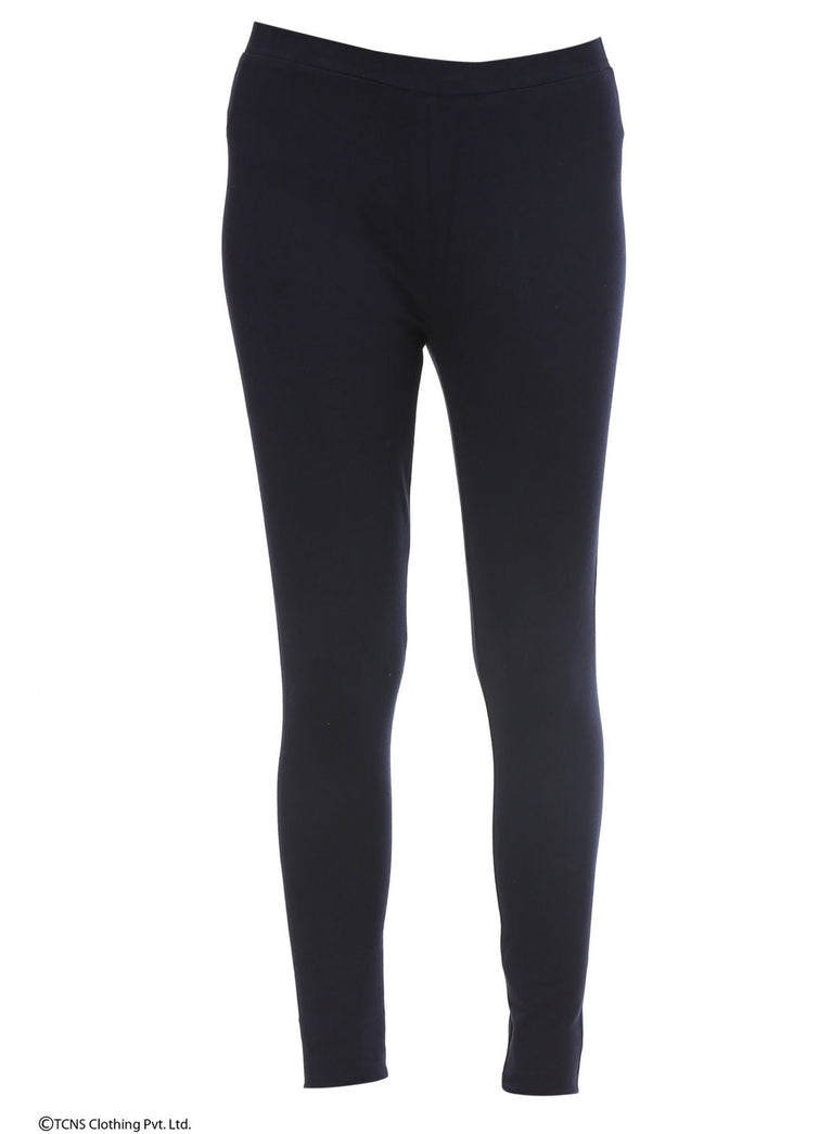 Crafted for movement and style, these navy blue yoga tights are designed to keep you comfortable during your active days. Featuring a sleek skinny fit and a soft knit fabric, they offer a flattering silhouette while ensuring ease of motion. The elasticated waistband provides a secure fit, and the two front pockets add a touch of practicality. Perfect for casual outings or yoga sessions, these tights pair effortlessly with tops, kurtas, or sneakers for a versatile look.