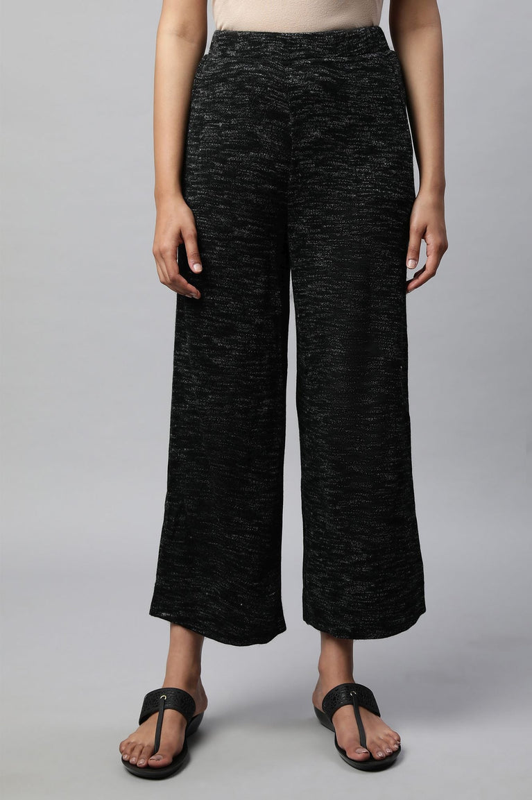 Black Solid Flared Rayon Palazzo With Pleated Detail