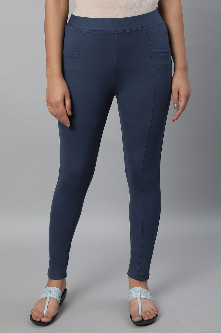 Blue Solid Skinny-fit Knit Tights with Elasticated Waistband