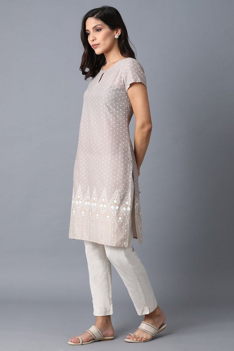 Beige Printed Kurta