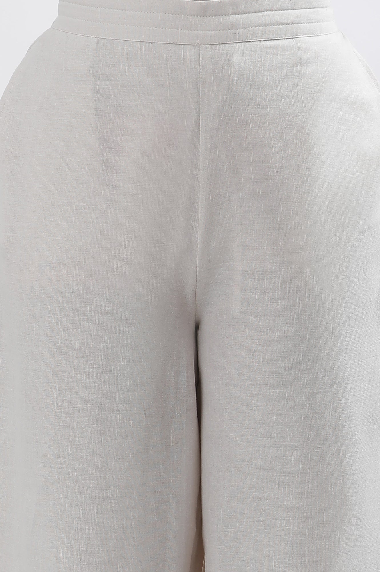 Beige Checkered Dobby Top & Jacket Set. This Sleeveless Top Is Paired With Straight Pants Crafted In Cotton Flax And With Striped Jacket To Complete The Look.