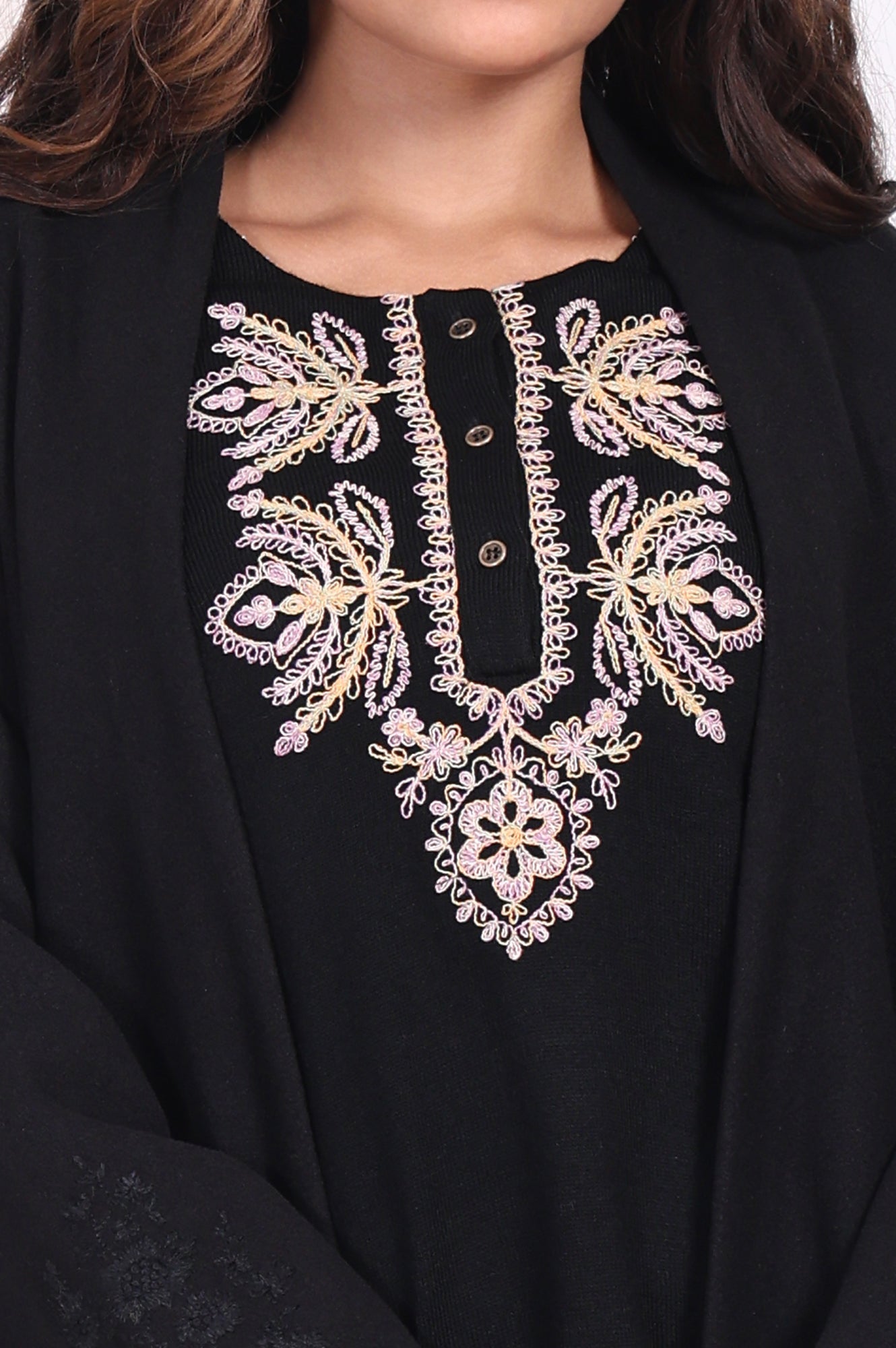 Effortlessly chic! This black solid straight coat for women is a wardrobe essential for the season. Designed with a clean, minimalist silhouette, it features a timeless open-front style and long sleeves with subtle embroidery details. Perfect for layering over casual or formal outfits, this coat offers a versatile look that transitions seamlessly from day to night. Pair it with tailored trousers or skinny jeans for a polished yet relaxed vibe. The straight hemline and woven fabric ensure a comfortable fit, making it ideal for winter outings. Elevate your style with this elegant creation that blends modern simplicity with understated sophistication.