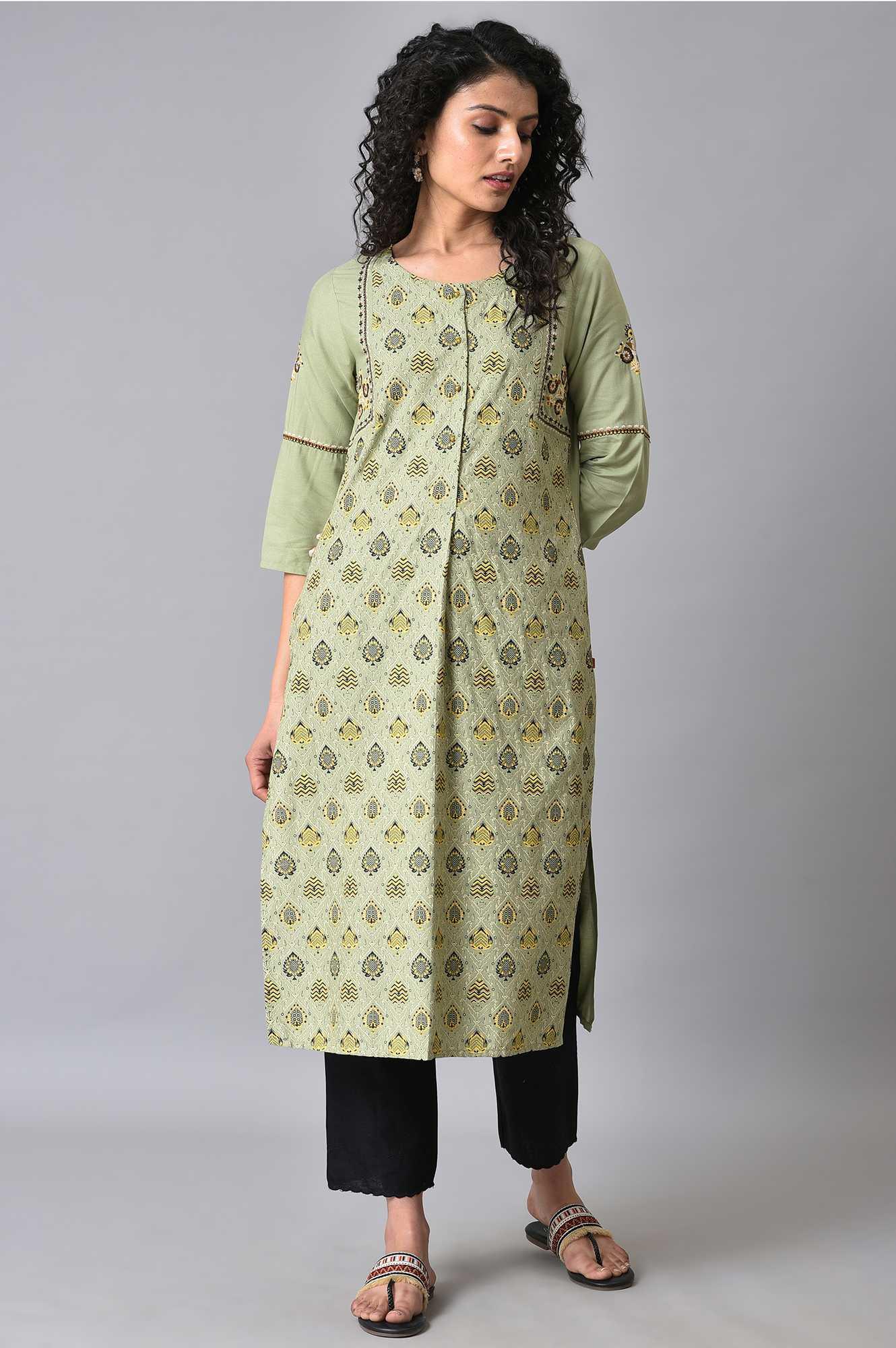 Black Straight Pants With Half Elasticated Waistband. It Has Embroidered Bootas And Scalloped Hem.