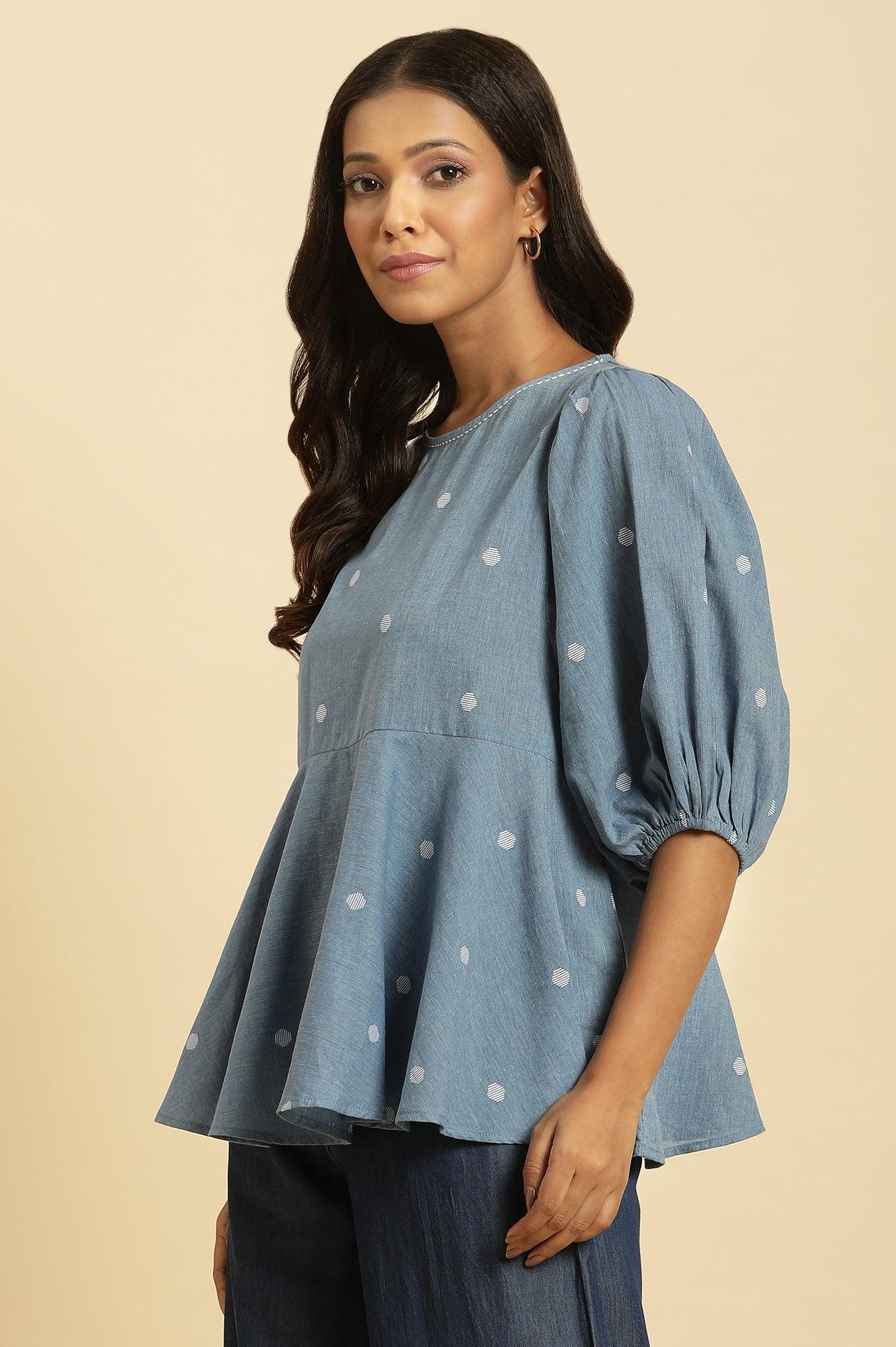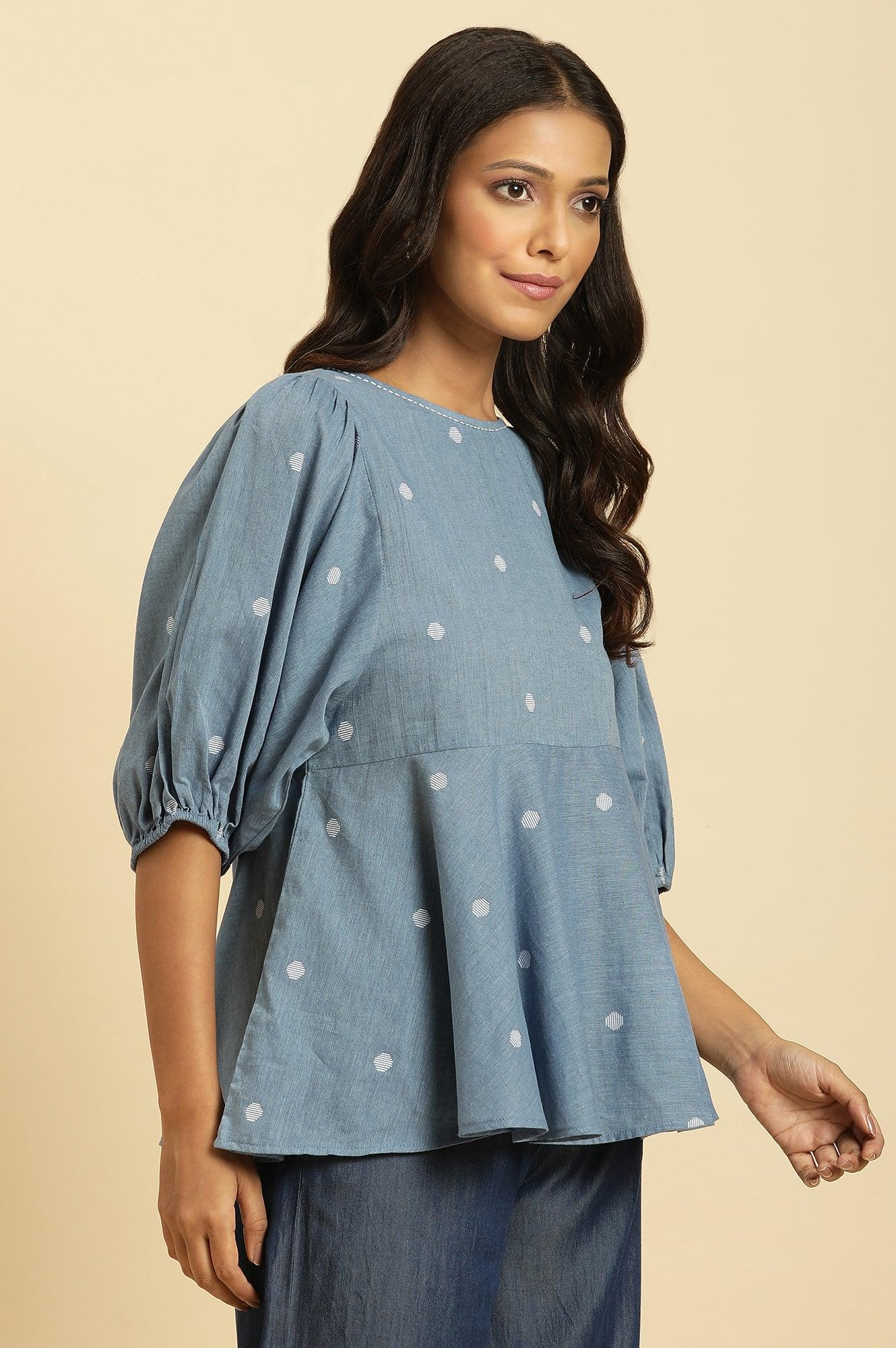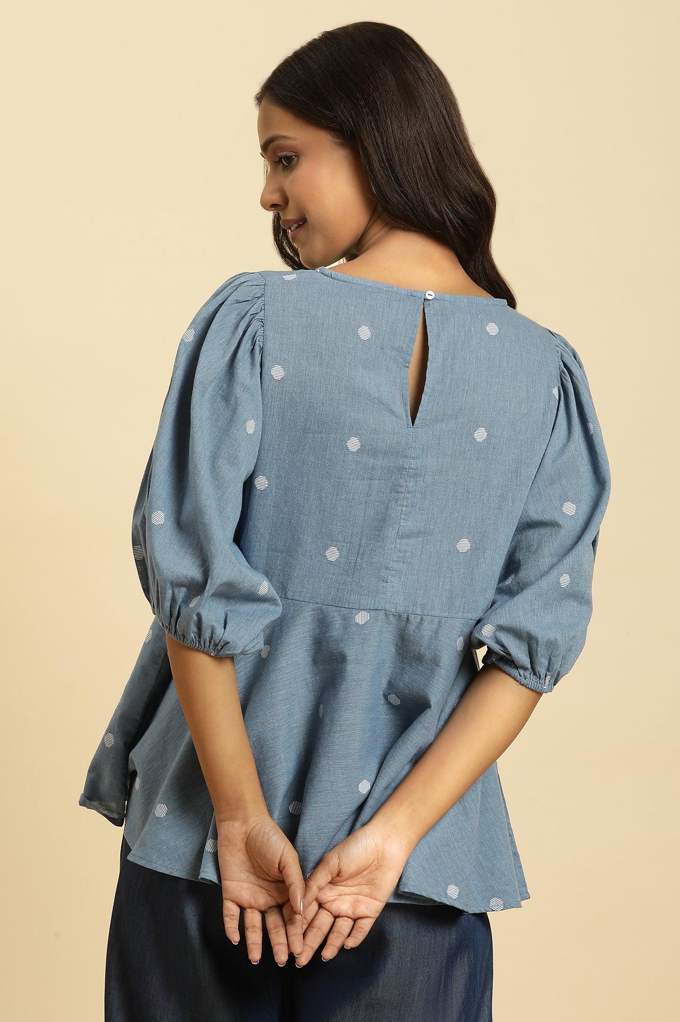 Blue Cotton Polka‑Dot Peplum Top for Women
