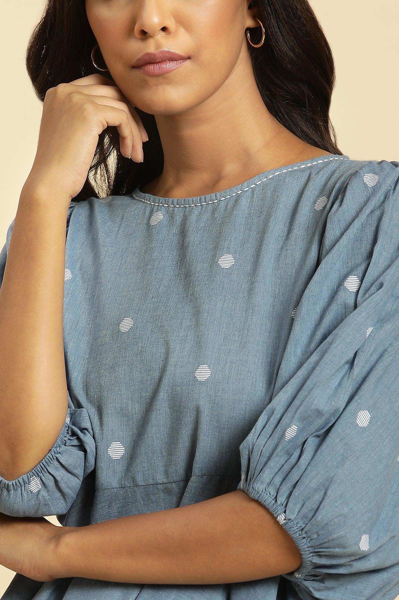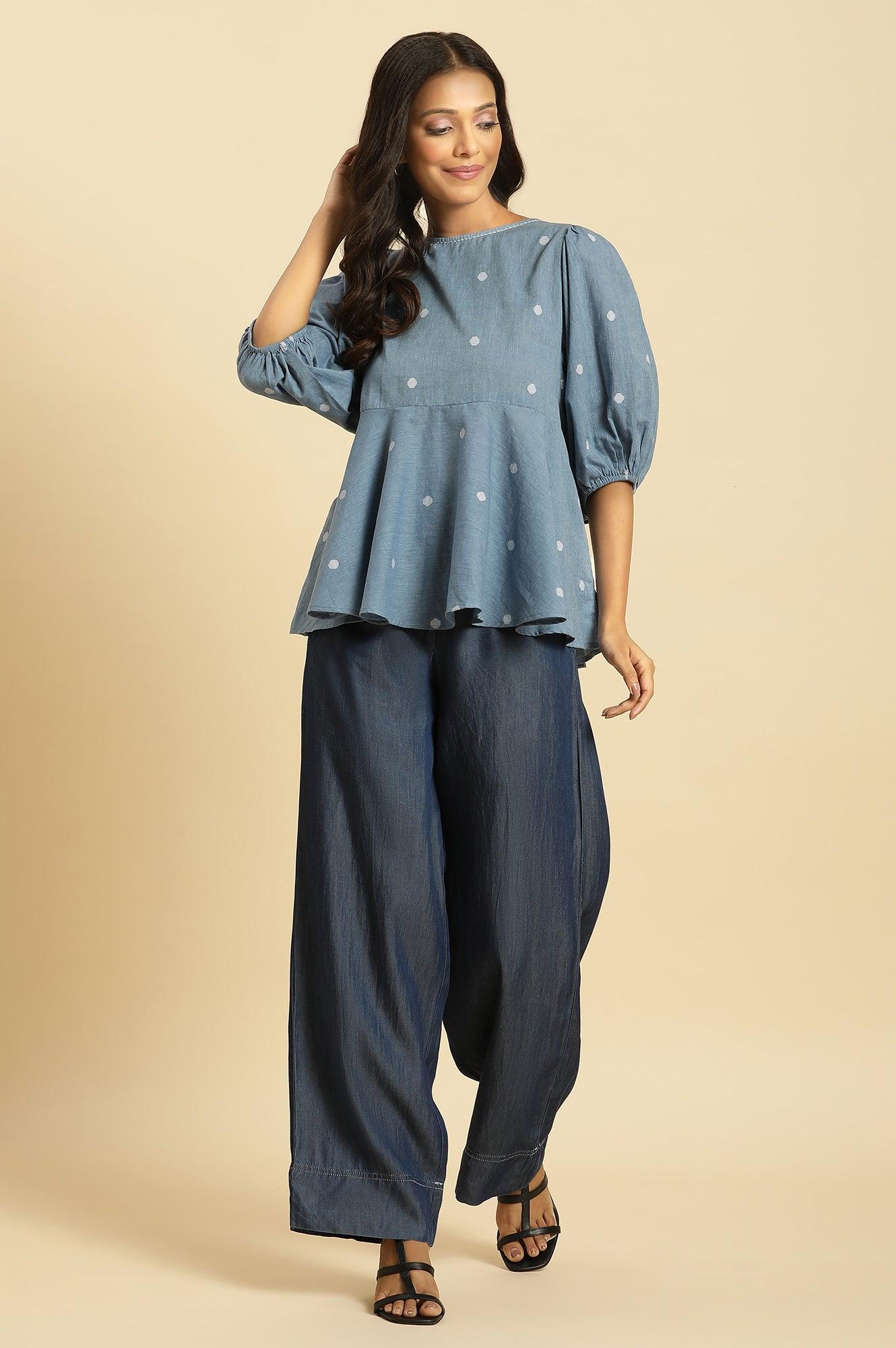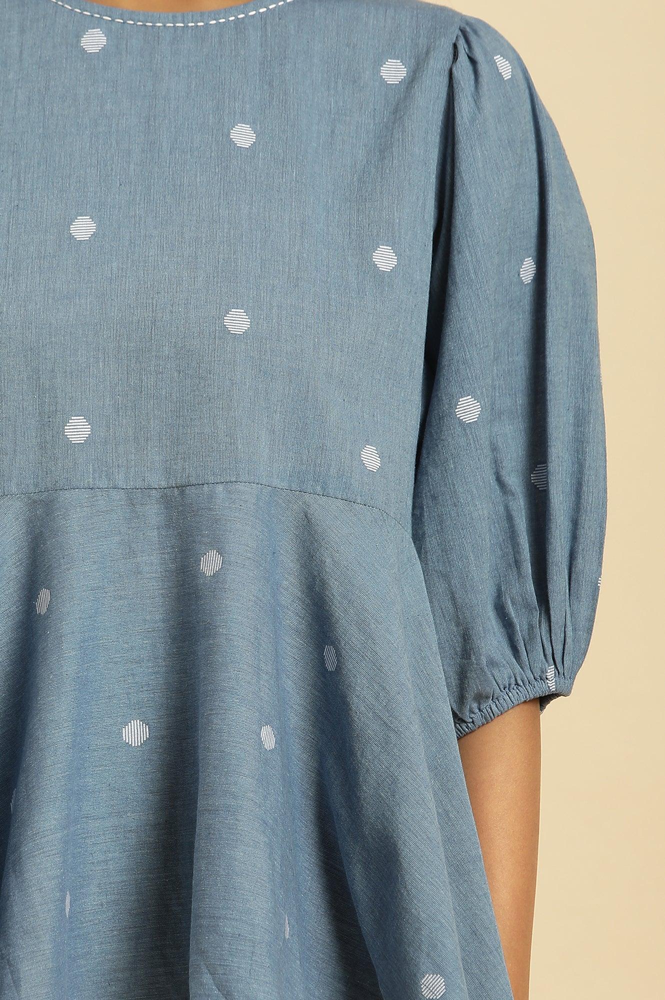 Blue Cotton Polka‑Dot Peplum Top for Women