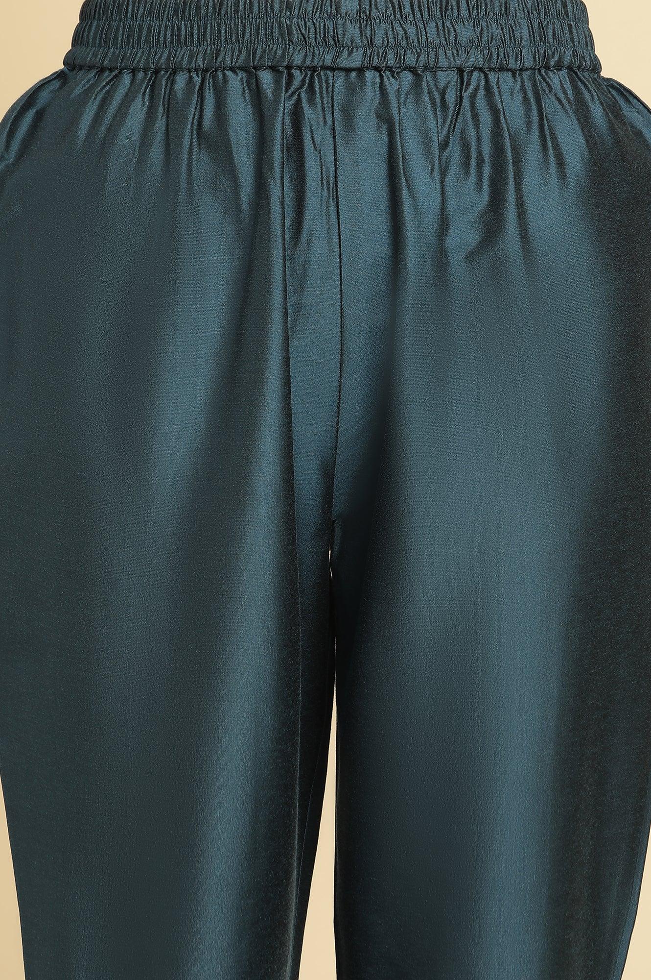 Blue Embroidered Shantung Kurta, Pants And Dupatta Set