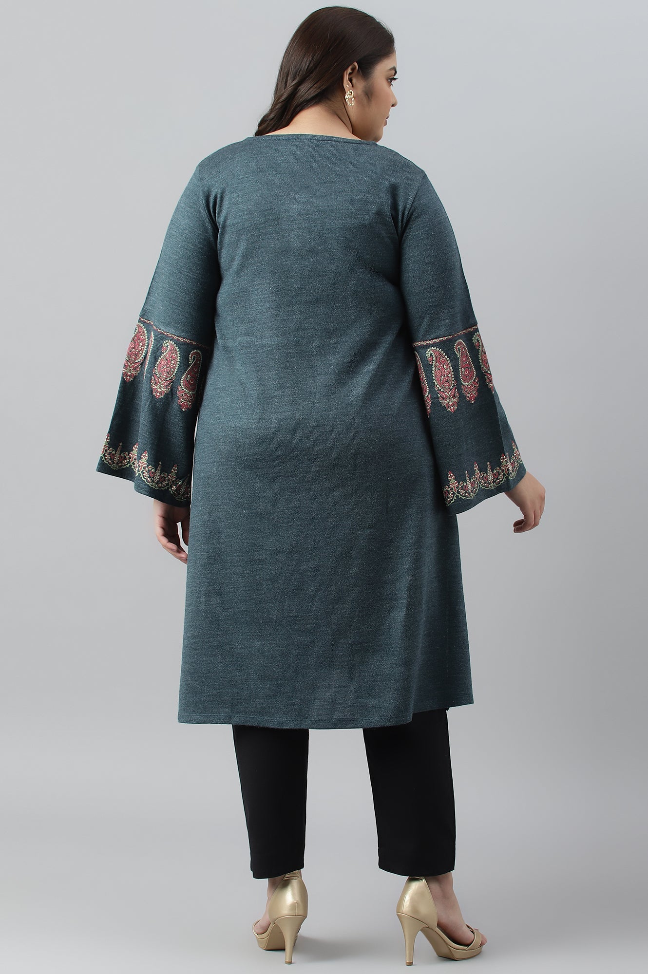 Blue Paisley Printed Knitted Plus Size Winter kurta
