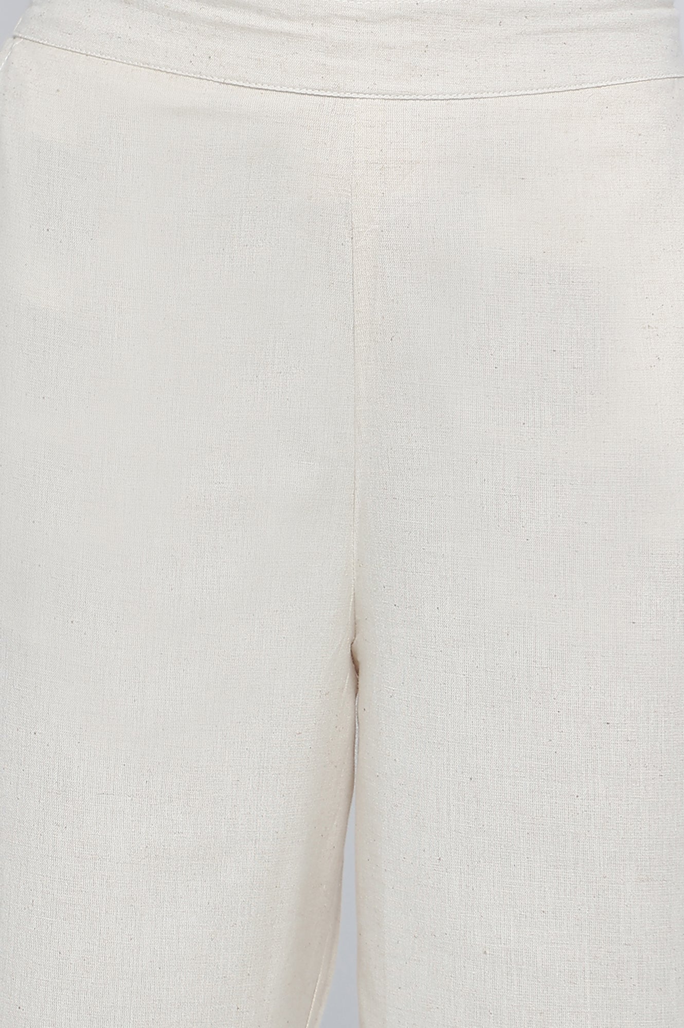 Curated for modern wardrobes, these off-white cotton flax trousers. With a design focused on versatility and comfort, these bottoms are tailored to flatter all body types. The ankle length and mid waist rise ensure ease of movement while maintaining a chic silhouette. The subtle texture and breathable fabric enhance daily comfort without compromising on aesthetics. Whether worn to work or for casual gatherings, they offer dependable styling options across seasons. Optimized as bottomwear for women, they’re also perfect when you want no-fuss styling that works. They’re versatile enough for both professional and cultural dressing.