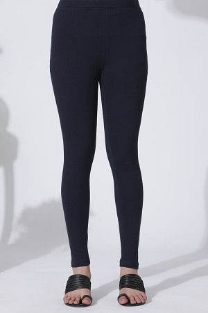 Midnight Blue Mock Wrap Kurta Featuring A Print Mix Of All Over Print Pattern. It Has An Asymmetric Hemline And Is Subtly Enhanced With Mirrorwork. The Kurta Is Paired With Knitted Solid Tights.