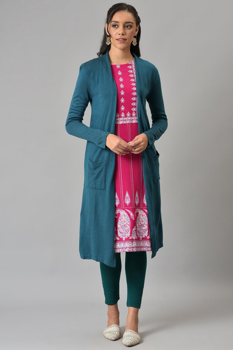 Blue Basic Longline Cardigan With Pockets.