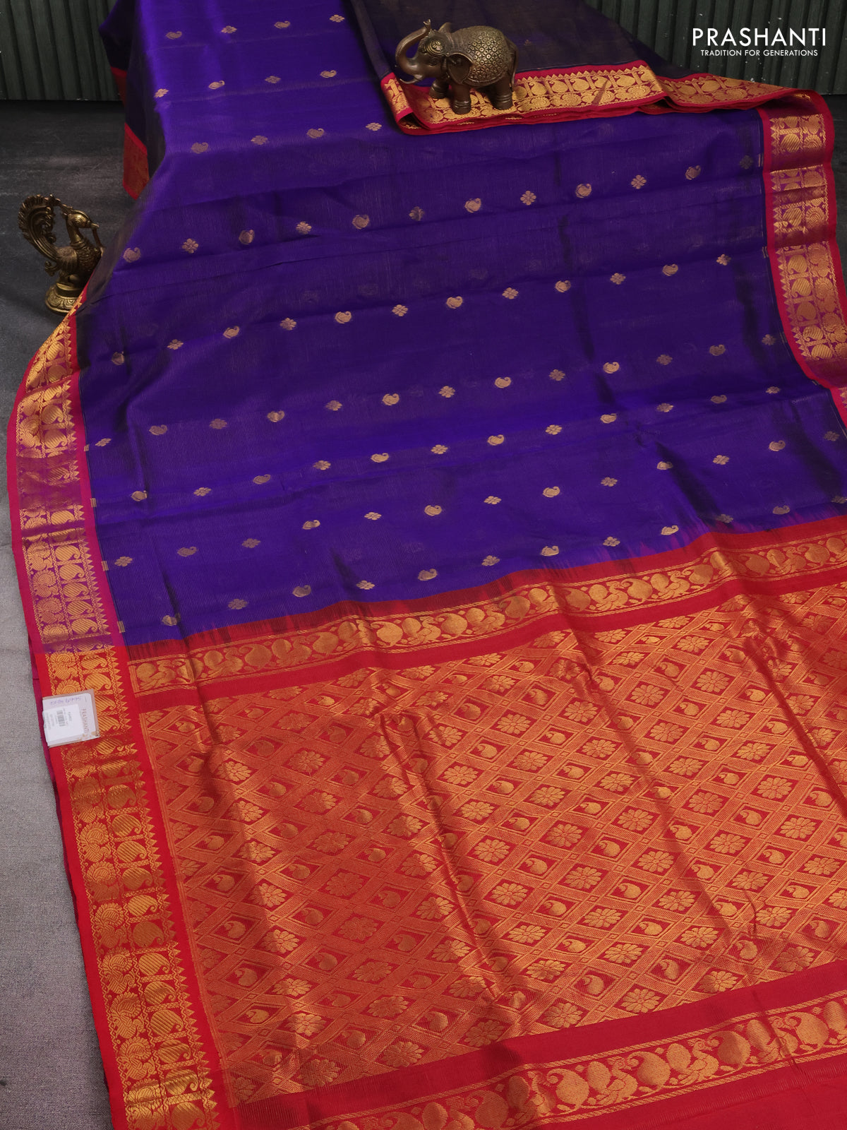 10 yards silk cotton saree blue and maroon with allover vairaosi pattern & zari buttas and zari woven border