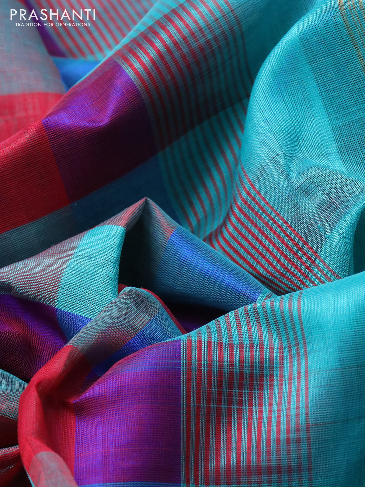 10 yards silk cotton saree multi colour and teal green with allover paalum pazhamum checks and zari woven border