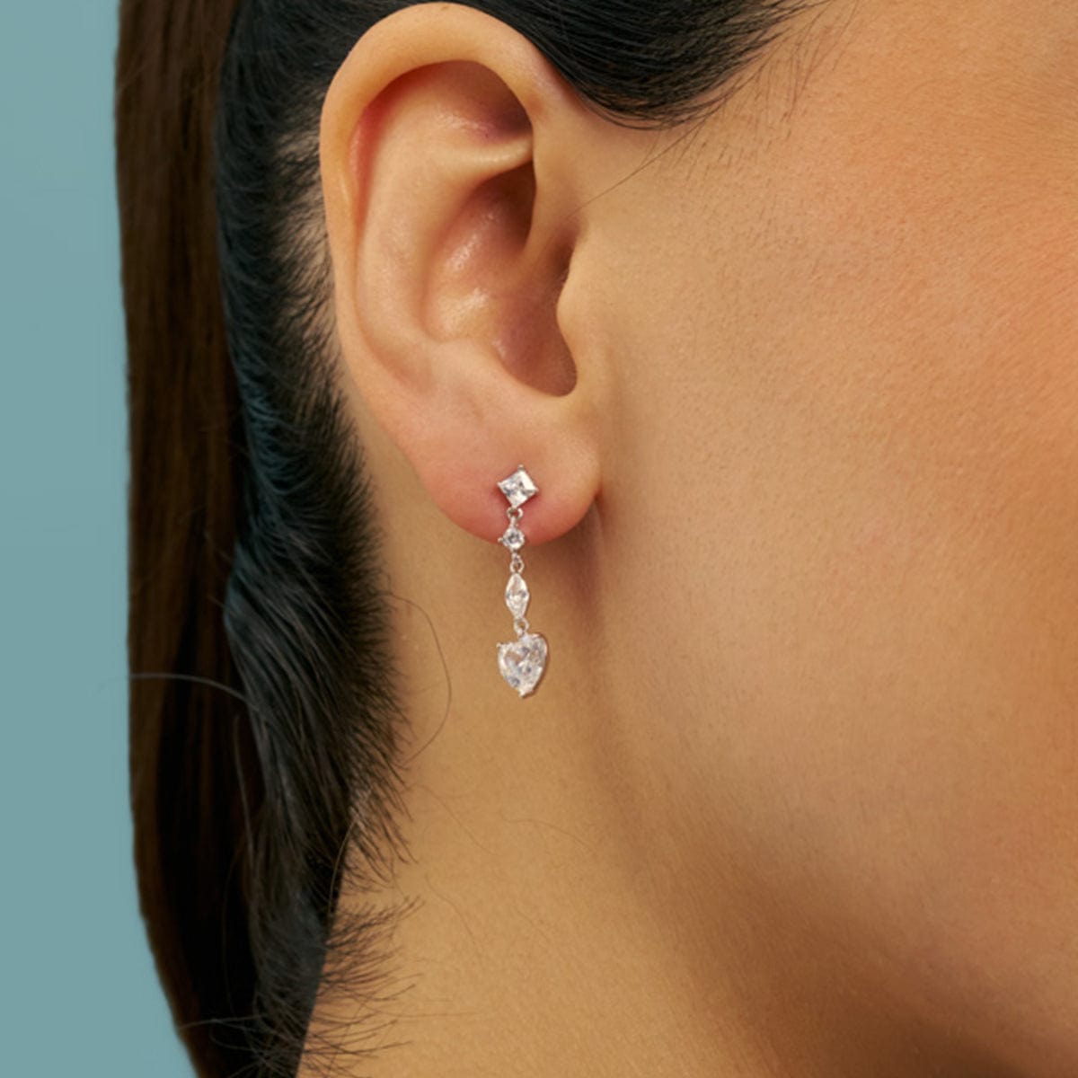 Heart Design Silver Drop Earring