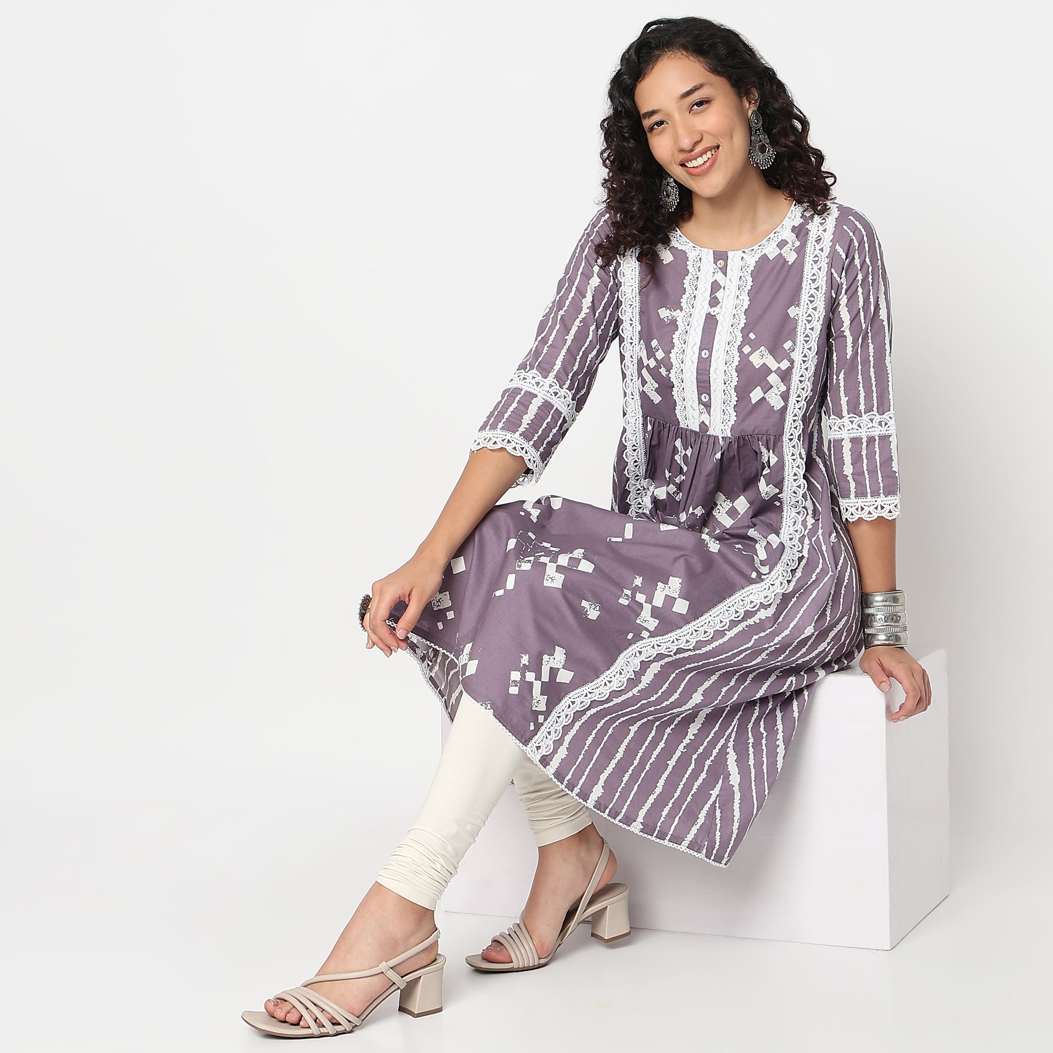 Experience the perfect blend of comfort and style with our Abstract Printed Kurta with Lace Highlight. Crafted from 100% cotton, this kurta is designed to keep you cool and comfortable all day long. The flare fit offers a graceful silhouette that flatters every body type, while the gathered cut shape adds a touch of elegance. Whether you're heading to a casual outing or a festive gathering, this kurta is your go-to choice for effortless style.