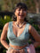 Saree: The model is wearing size S blouse and the saree is Raj Roopa.