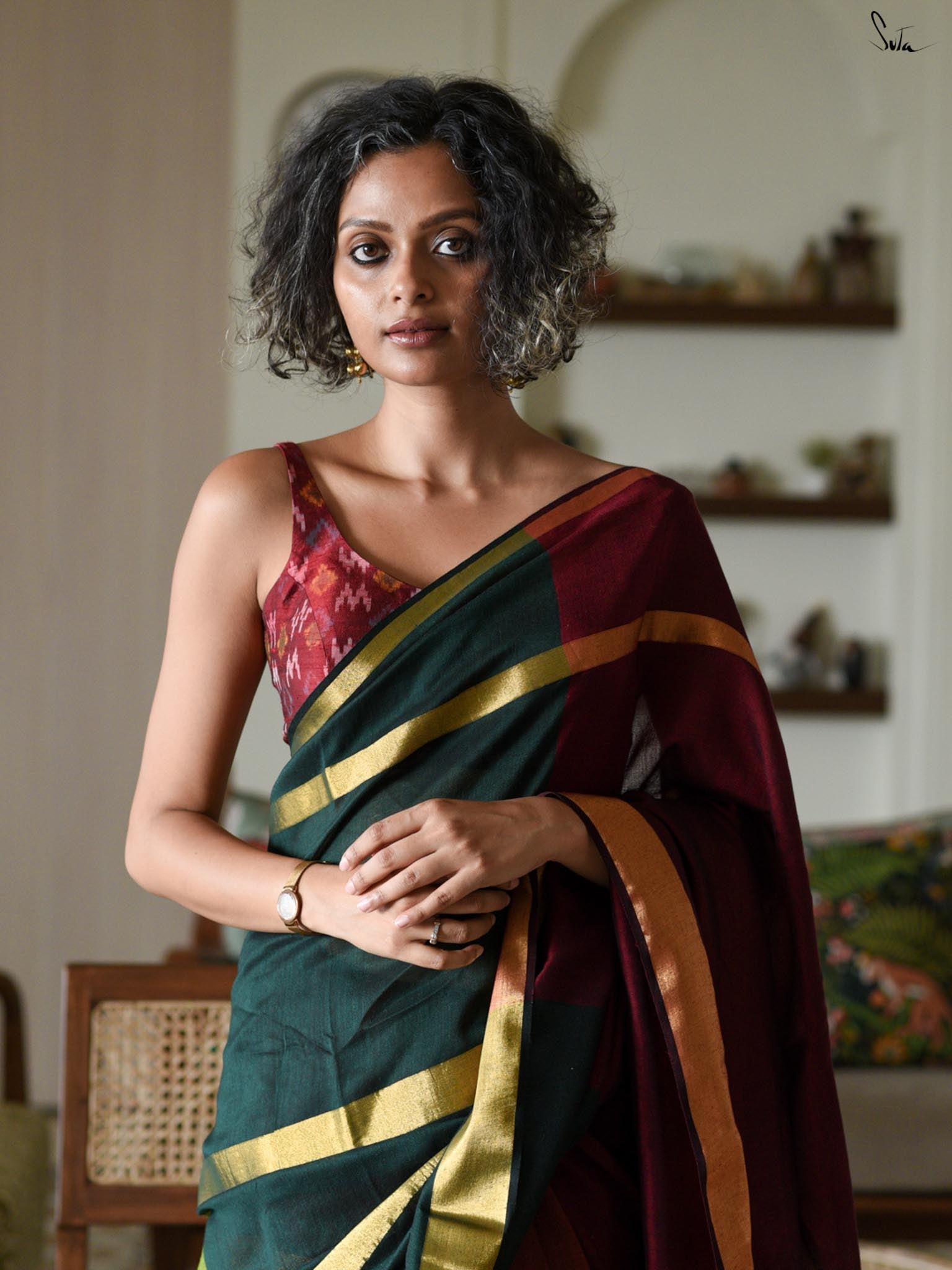 Blouse: The model is wearing a blouse from our in house collection.