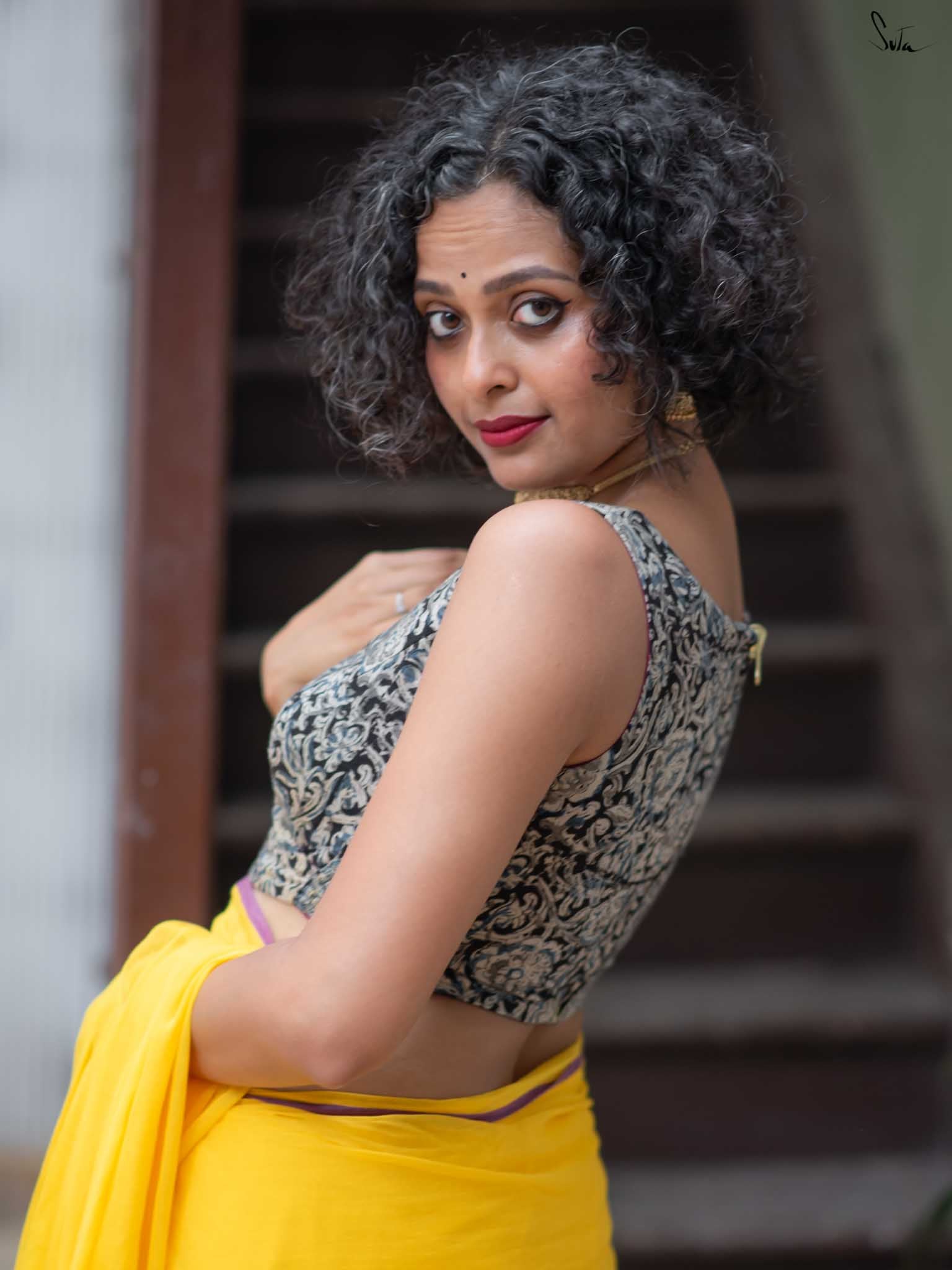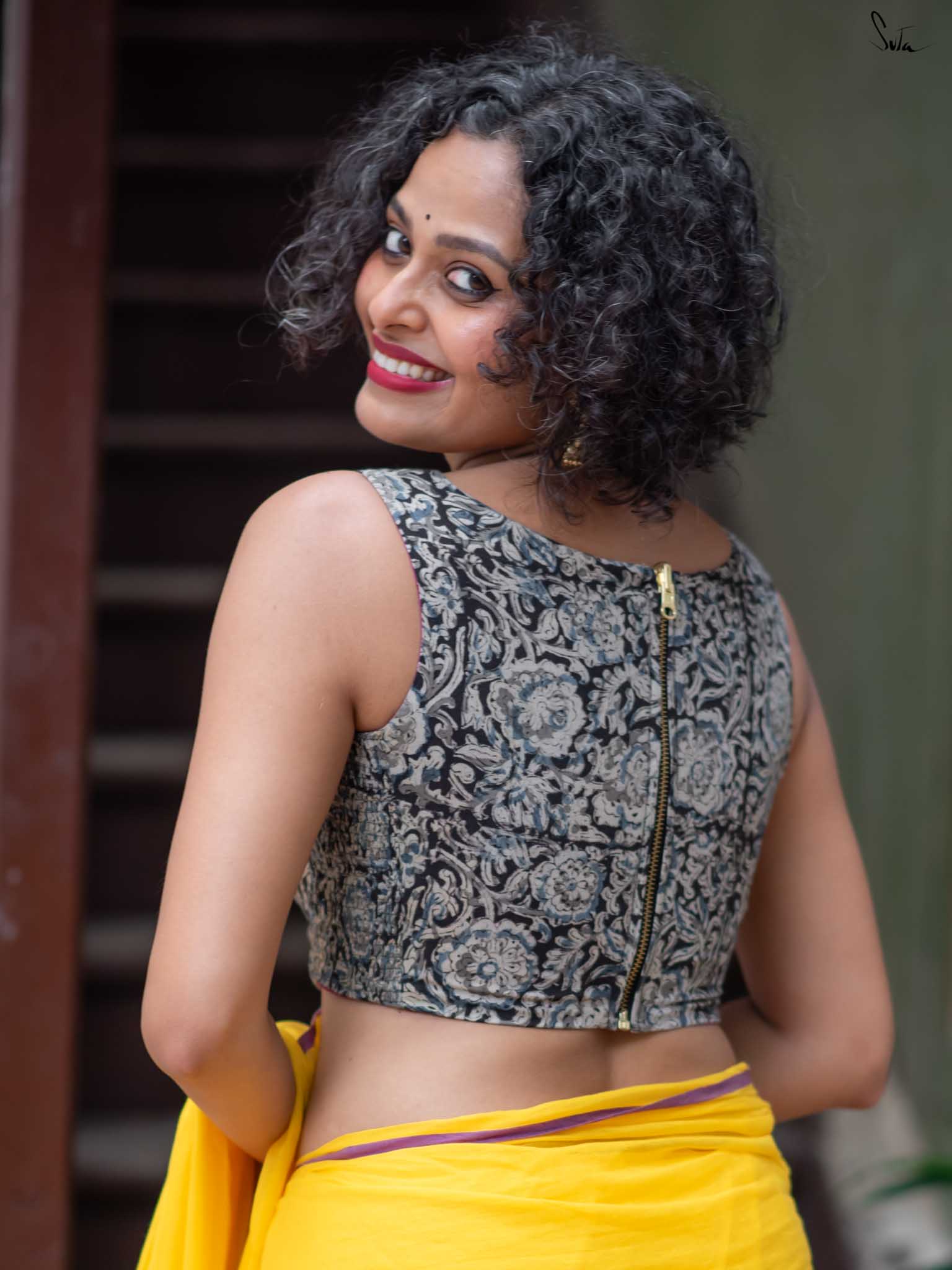 Su, the model is wearing size XS blouse and the saree Haldi hustle