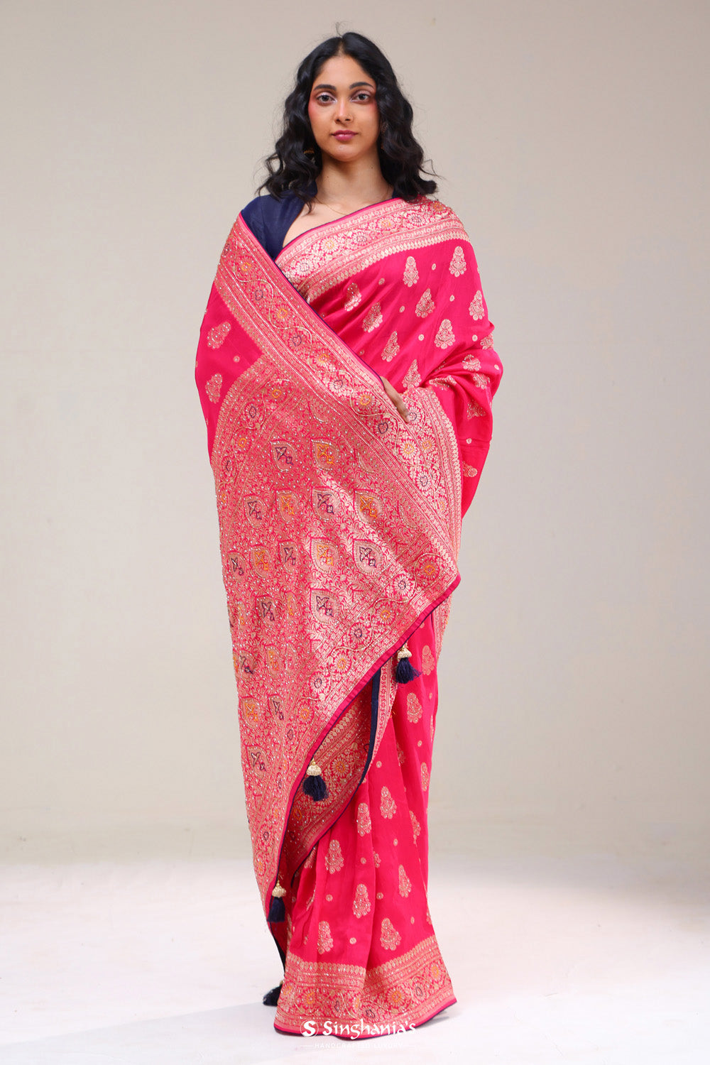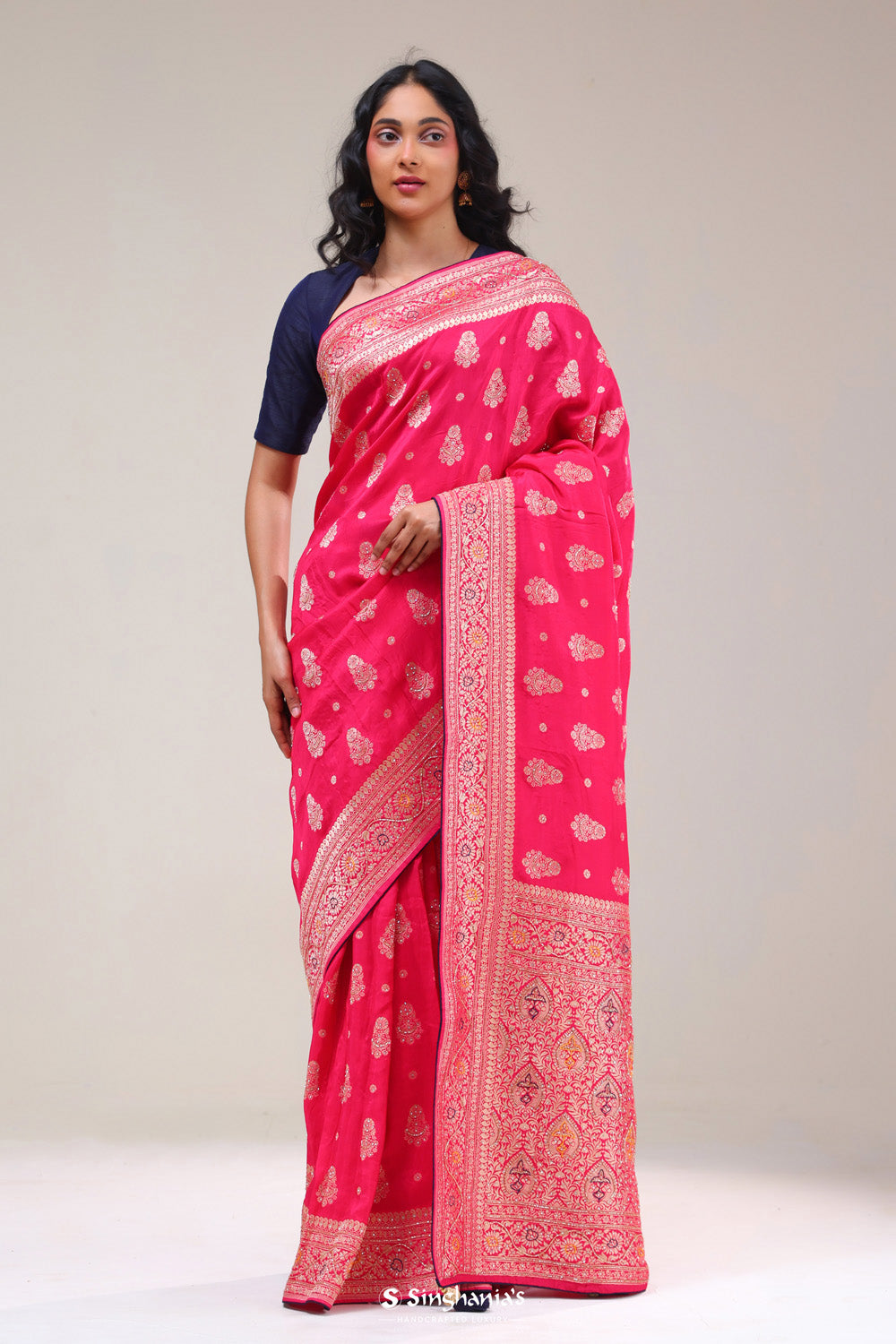 Amaranth Pink Silk Butta Handcrafted Saree