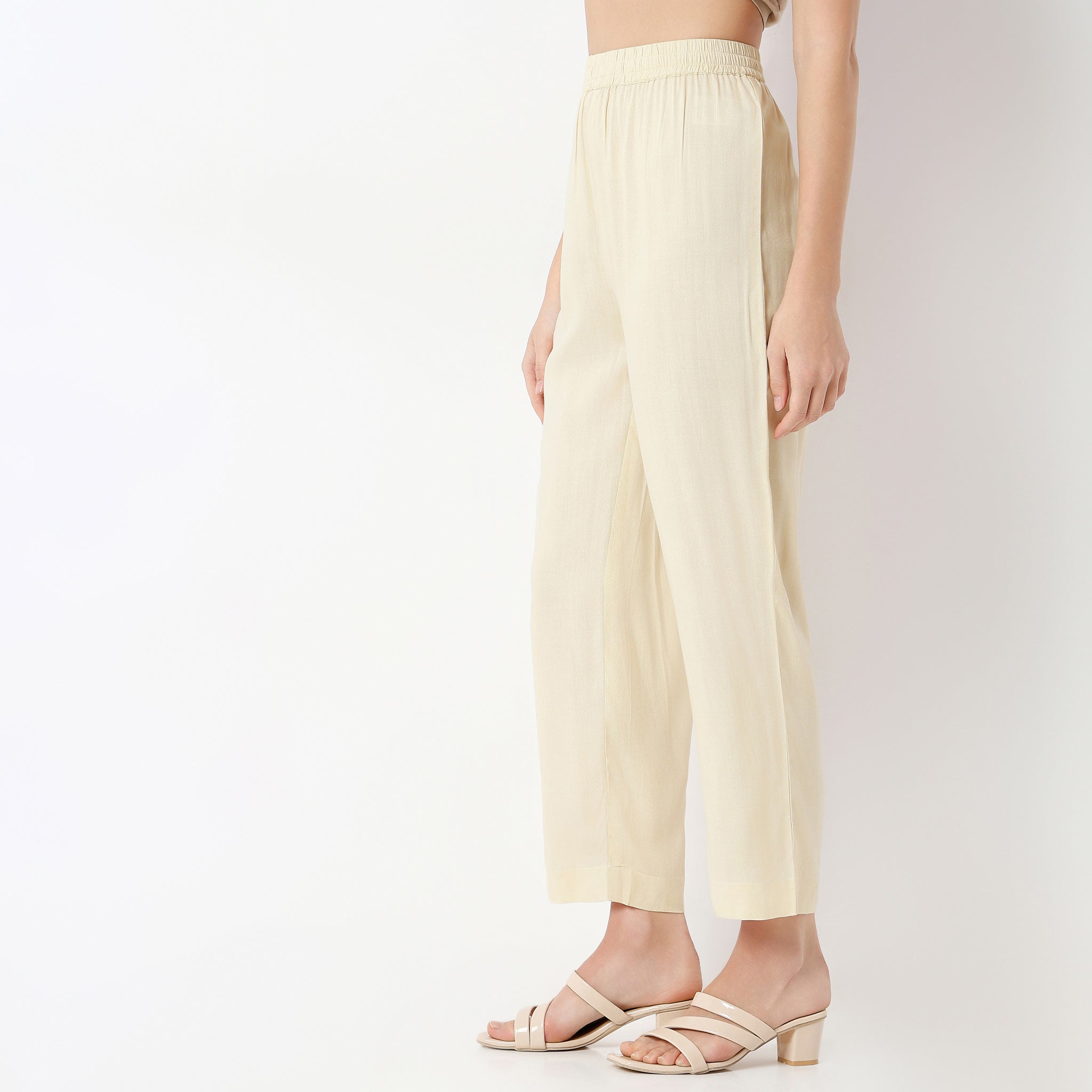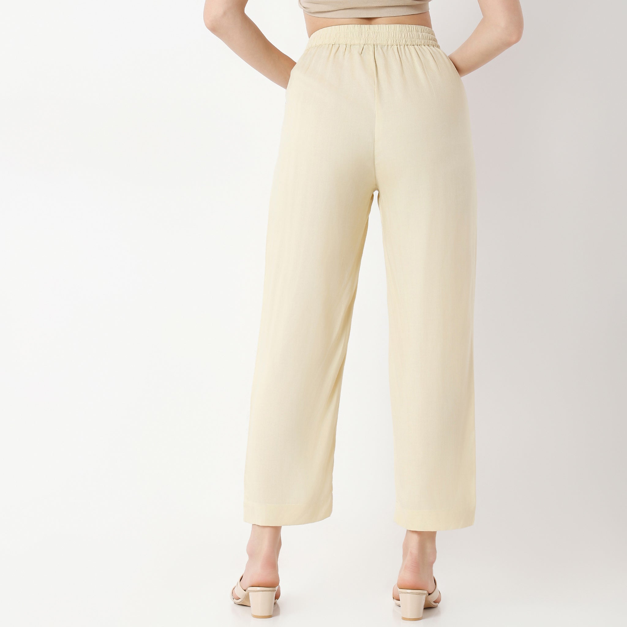 Experience the perfect blend of comfort and style with our Straight Fit Solid Ankle Length Mid Rise Pants. Crafted from 100% Rayon, these pants offer a soft, breathable feel that keeps you comfortable throughout the day. The solid pattern and straight cut provide a timeless look that can be dressed up or down, making them a versatile addition to your wardrobe. Whether you're heading to the office or enjoying a casual day out, these pants are your go-to choice for effortless elegance.