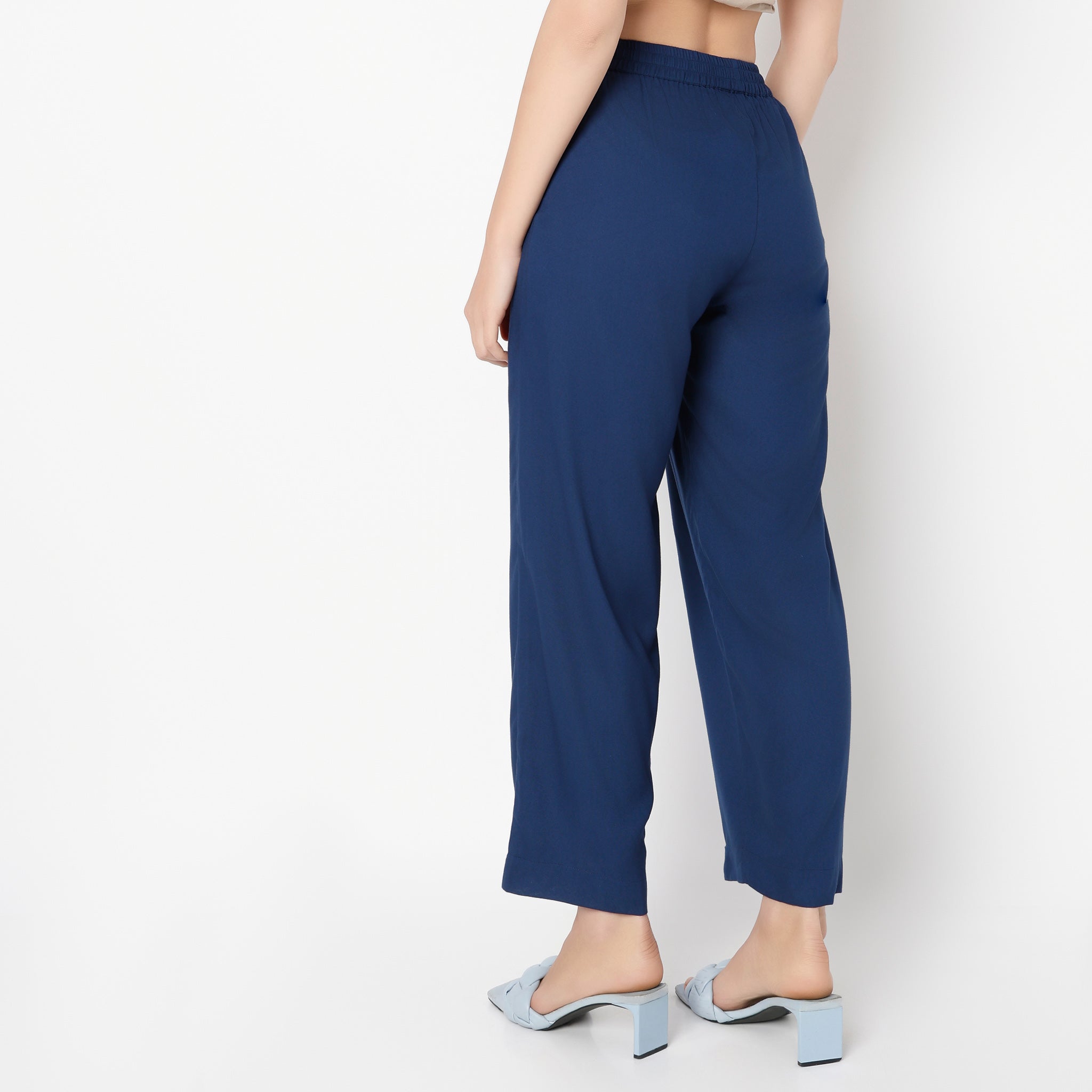Ankle Length Straight Fit Solid Pants