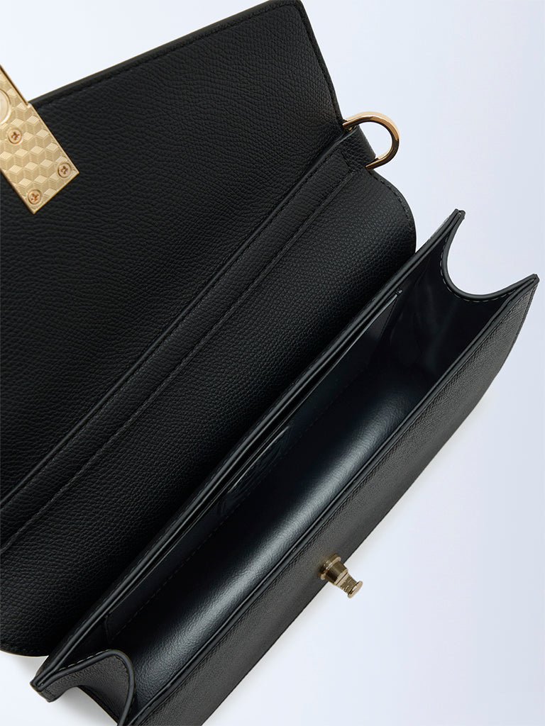 Accented with gold-tone detailing and a signature turn-lock closure, it features a chain strap for versatile styling.